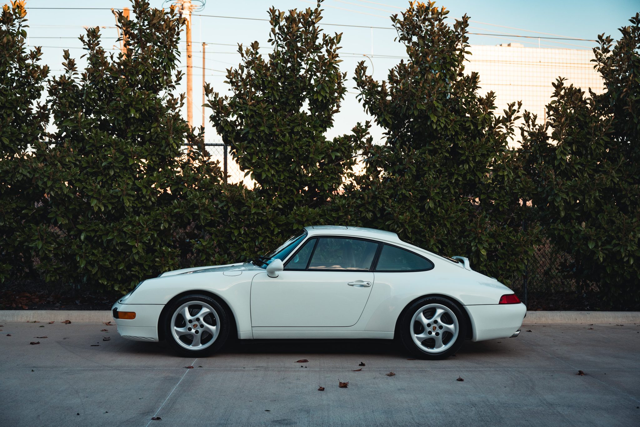 The 17″ Turbo Twist wheels are mounted with a mixture of Michelin tires. Braking is handled by Porsche-branded calipers over cross-drilled rotors at all four corners. The suspension has been modified with H&R springs, Bilstein B8 shocks and struts, Tarett Engineering upper and lower control arms, kinematic and tow links.