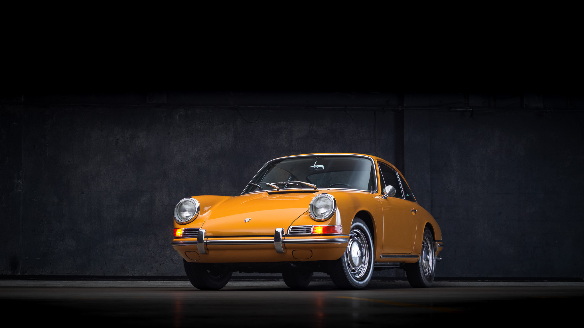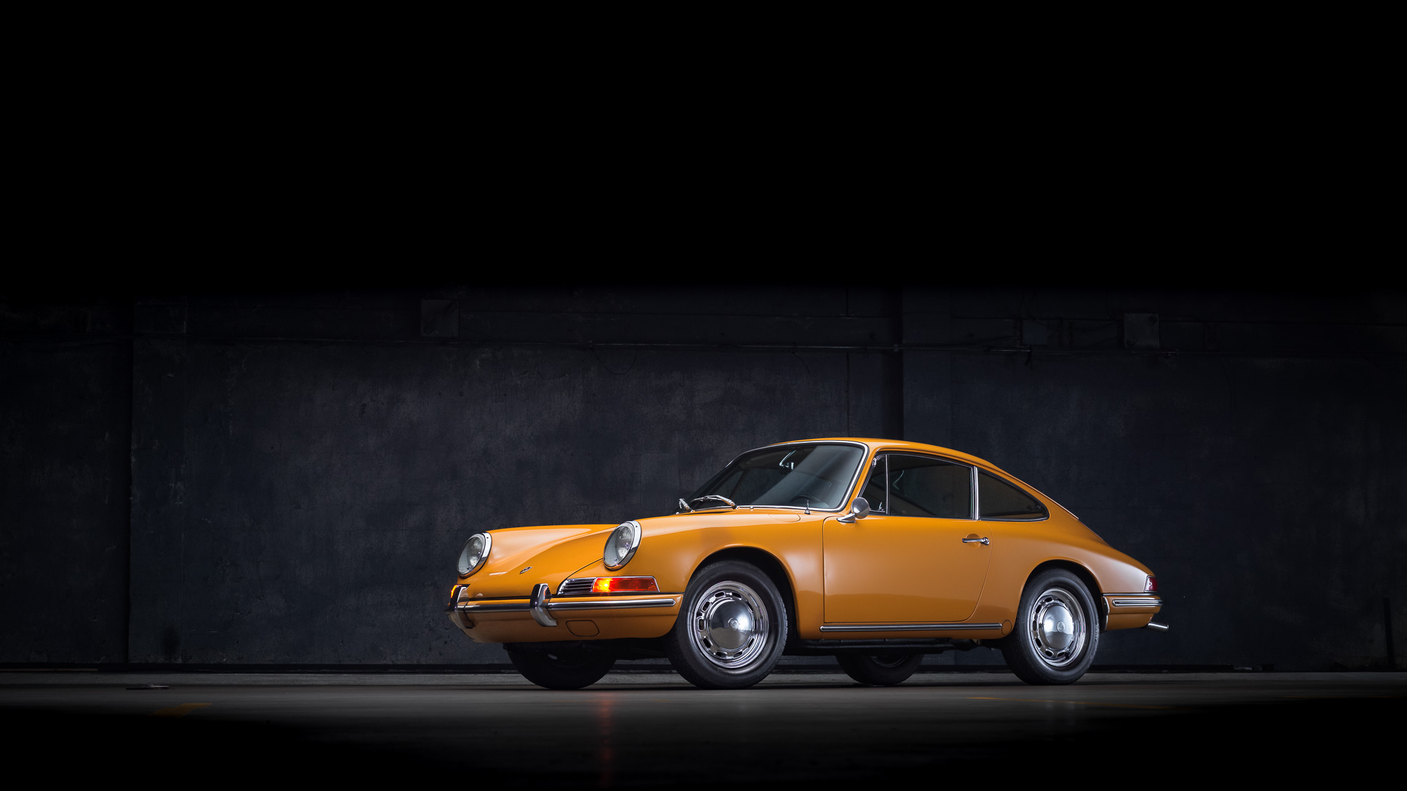 Chrome 15″ steel wheels wear chrome covers with Porsche crests and are mounted with Vredestein Sprint Classic tires. Koni rear shocks have been added, and stopping power is provided by four-wheel disc brakes.