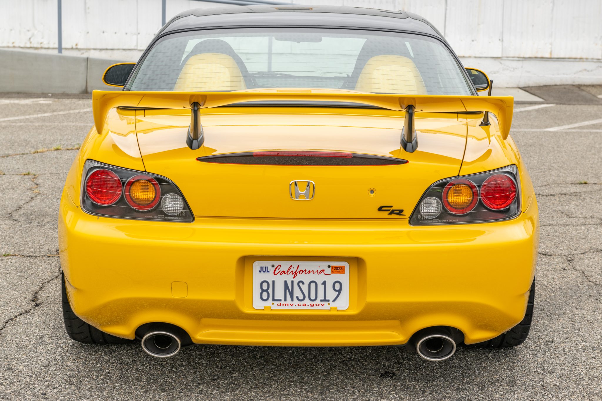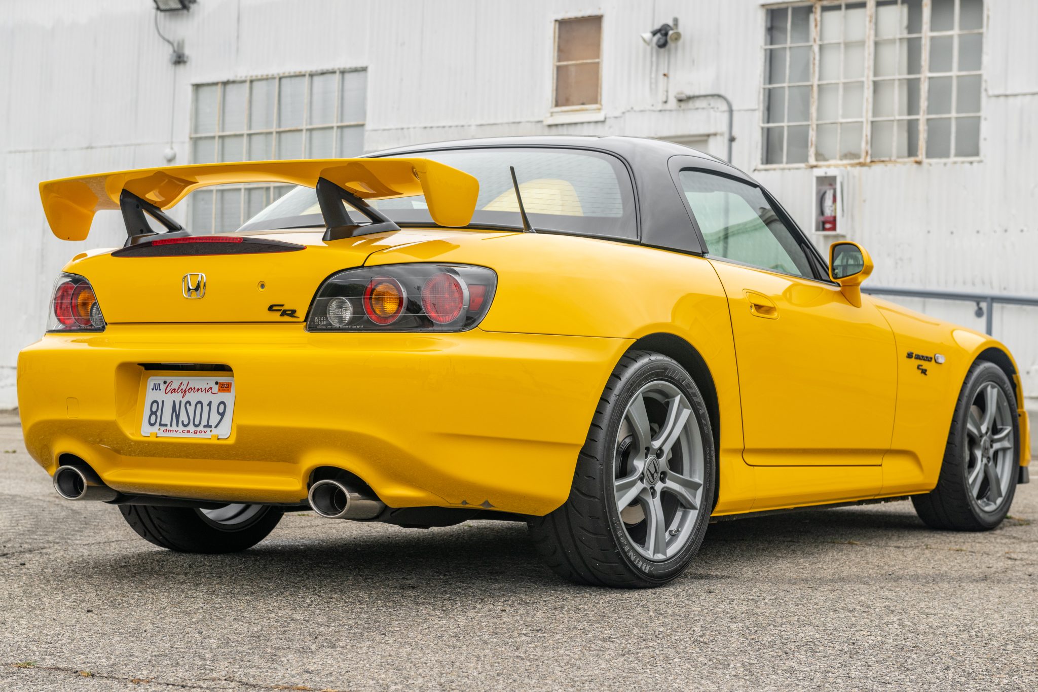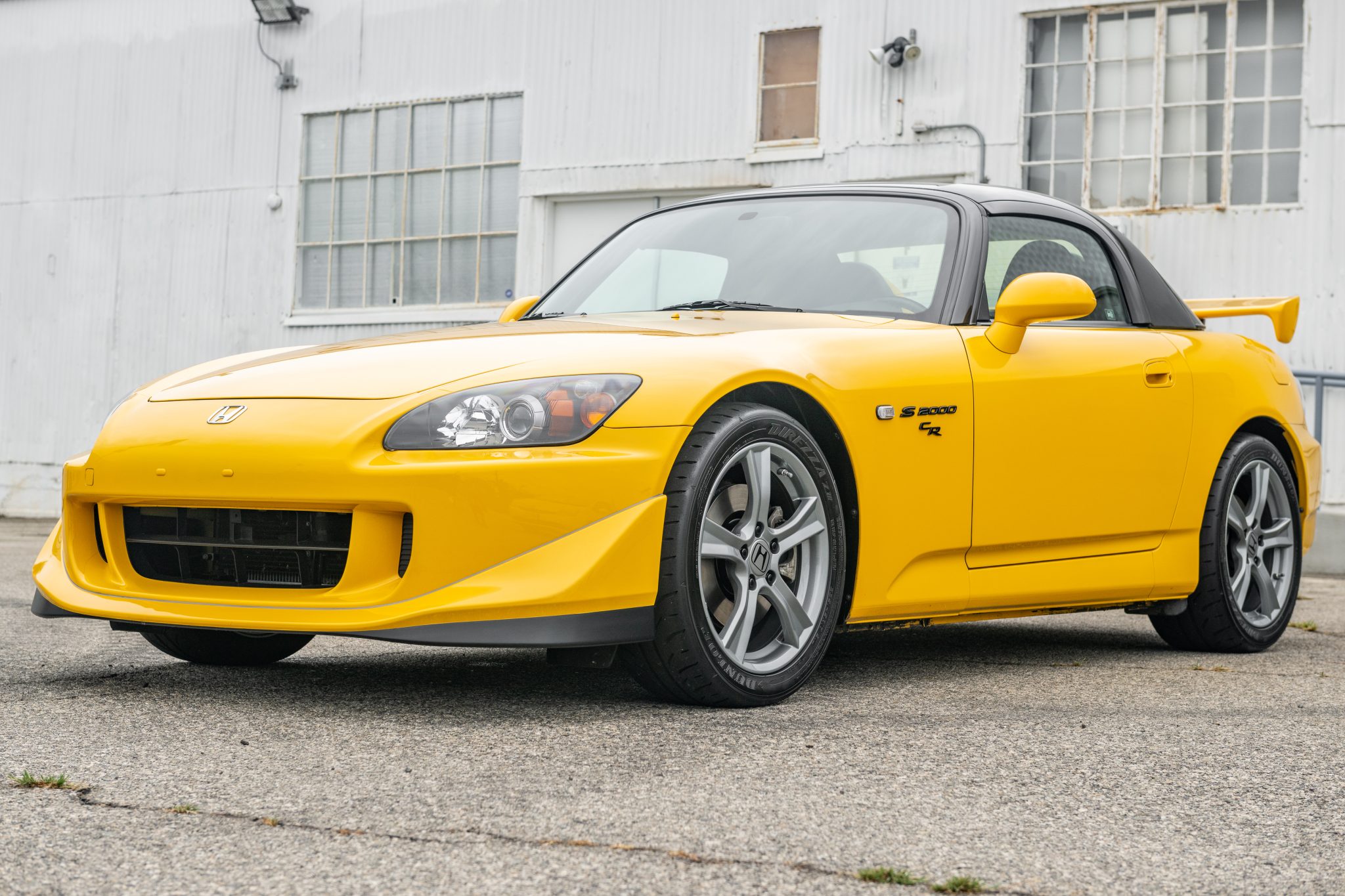 Staggered-width 17″ five-spoke alloy wheels wear 225/45 front and 255/40 rear Dunlop Direzza ZIII tires. The CR model features higher-rate springs, stiffer anti-roll bars, additional chassis bracing, and a quicker steering ratio compared to the standard AP2 S2000.