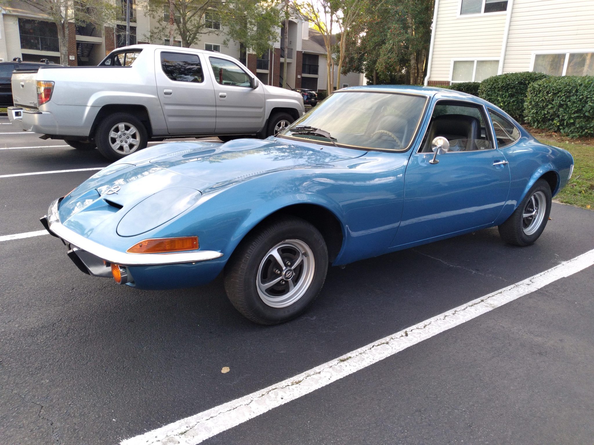 Factory 13″ Rostyle wheels feature black-painted pockets and Opel center caps. Stopping power is provided by front disc and rear drum brakes. There is corrosion on the wheels and the tires should be replaced due to age.