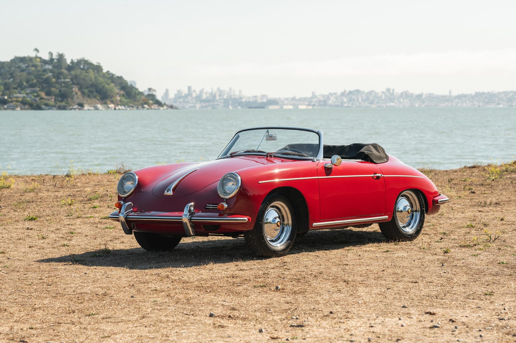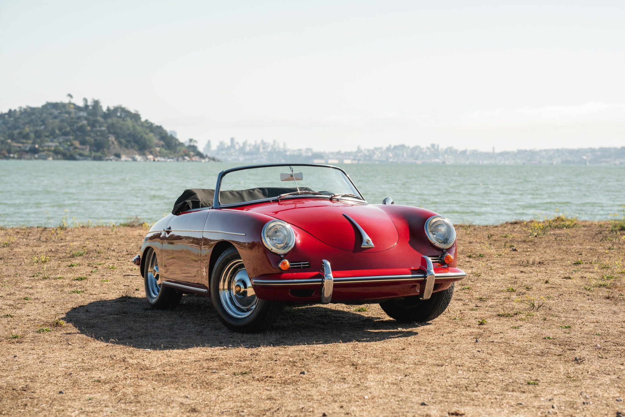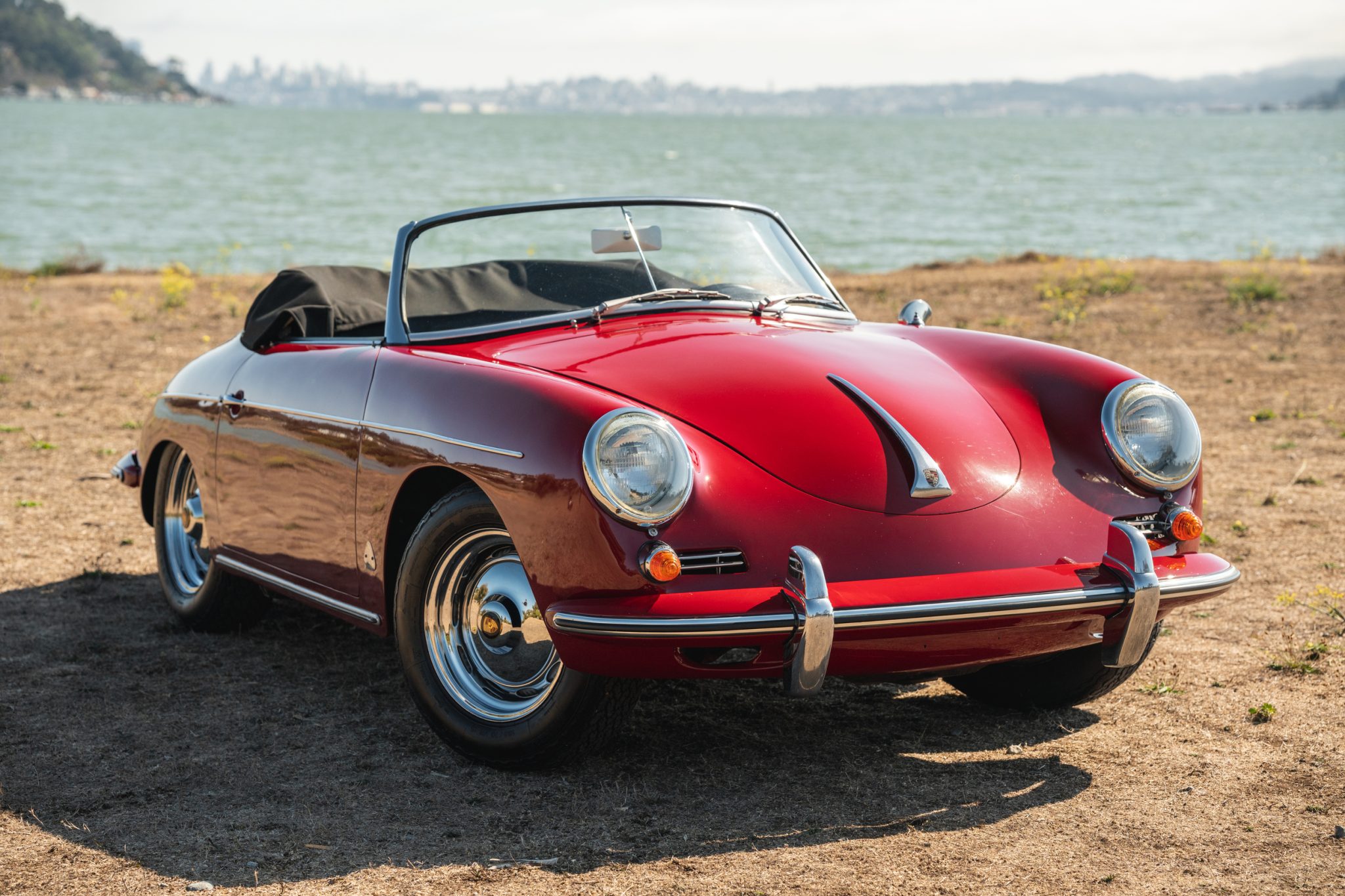 Chrome 15″ ventilated steel wheels measure 5.5″ in width and were fitted with replacement Porsche-crest hubcaps in 2022. They are mounted with Michelin XWX tires that were reportedly installed in 2019. A 15×4.5″ spare wheel with a Michelin tire is stowed in the front trunk. Stopping power is provided by four-wheel drum brakes.