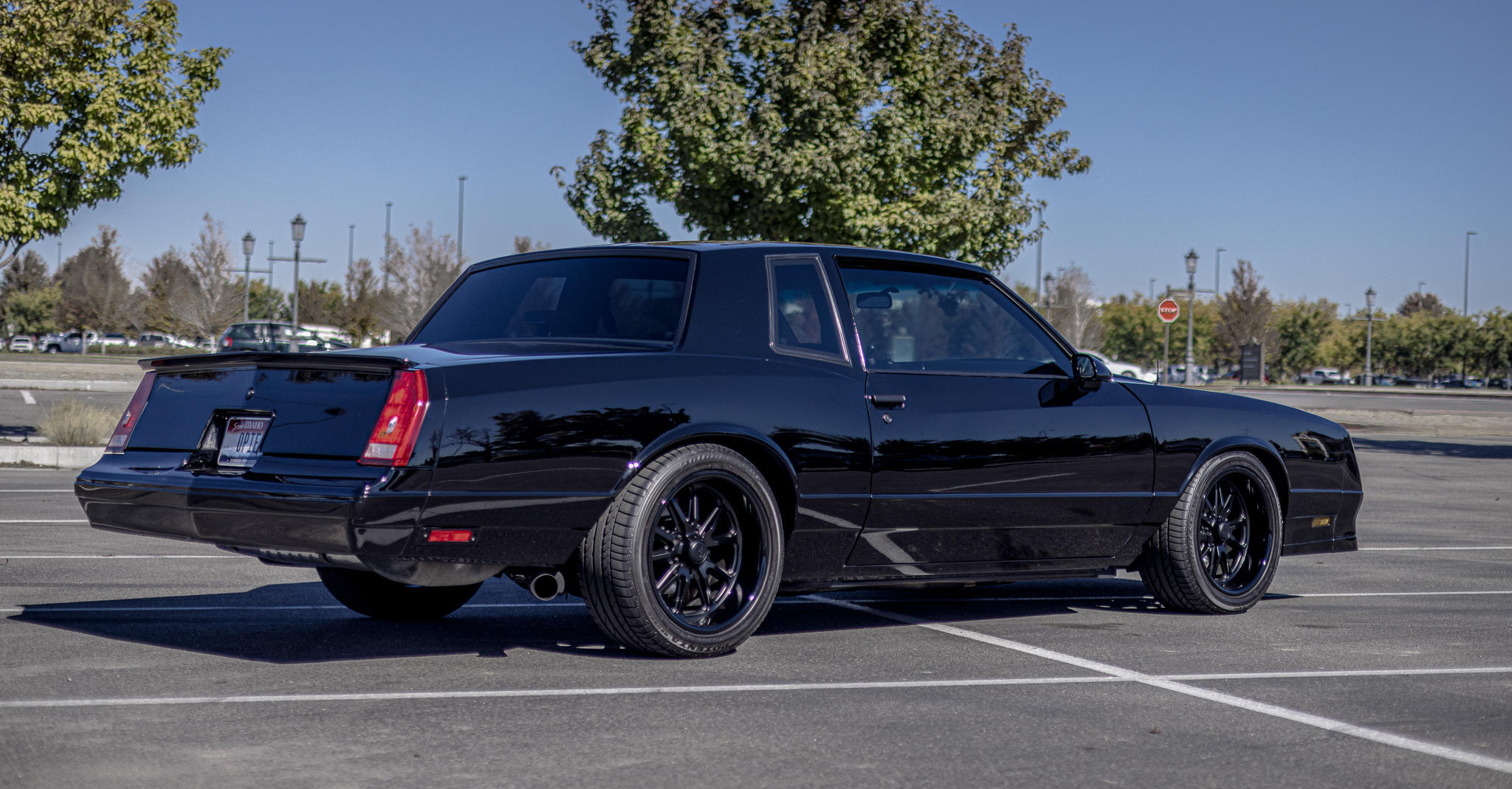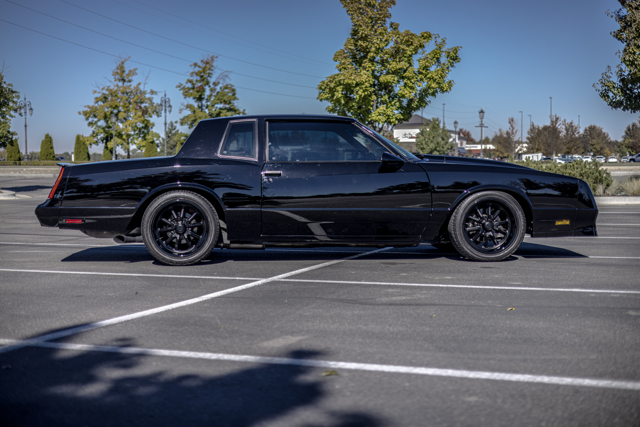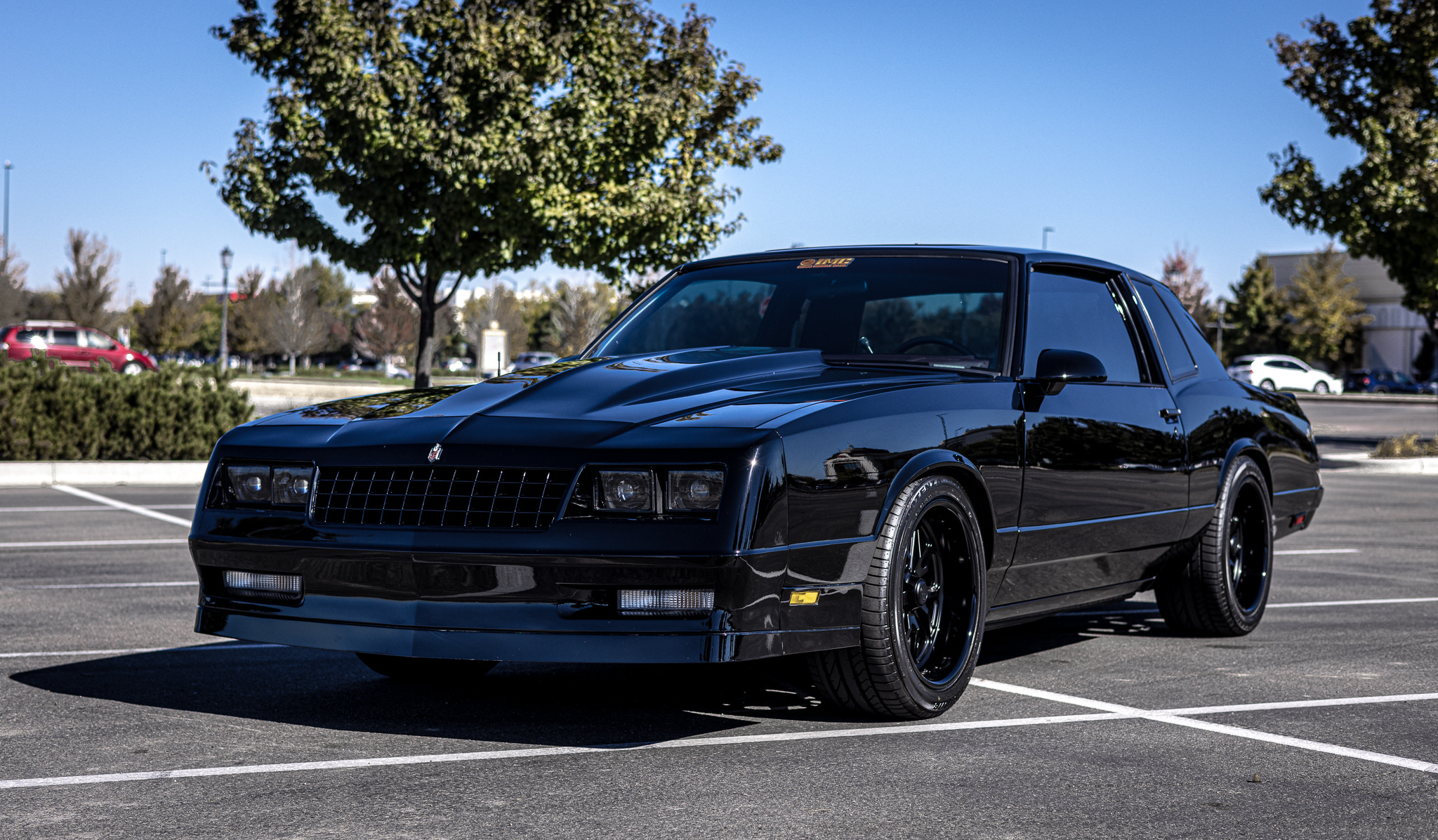 Black-finished 18” US Mags wheels are mounted with 275/40 Bridgestone Potenza RE050A tires. A replacement power steering pump and polyurethane bushings were reportedly installed during the build in addition to the following components: