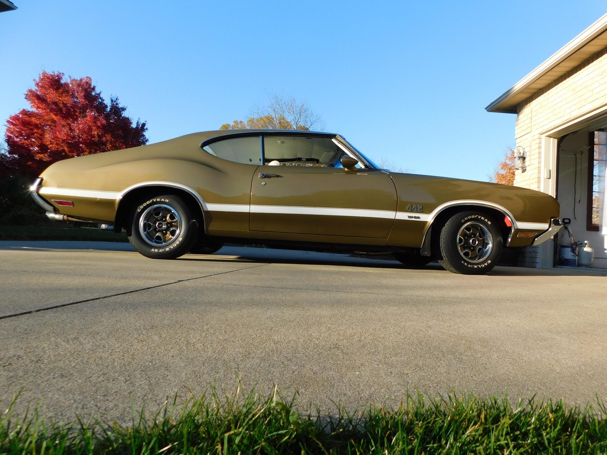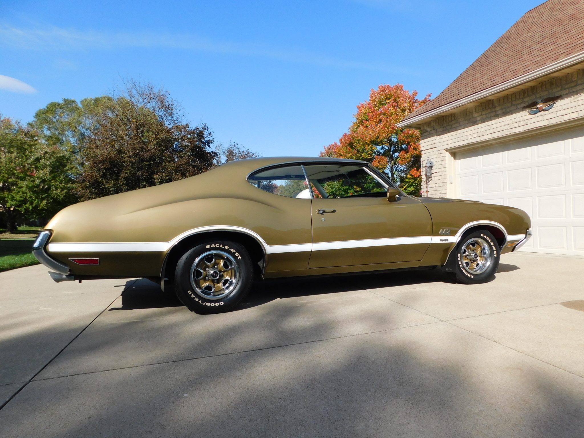 The 14″ wheels are said to have been sourced from a 1970 Oldsmobile Rallye 350 and were subsequently finished in Burnished Gold paint. The seller states that the 245/60 Goodyear Eagle ST tires were mounted in 1982. Braking is handled by front discs and rear drums. The factory wheels, tires, and optional hubcaps are included in the sale and pictured in the gallery below.