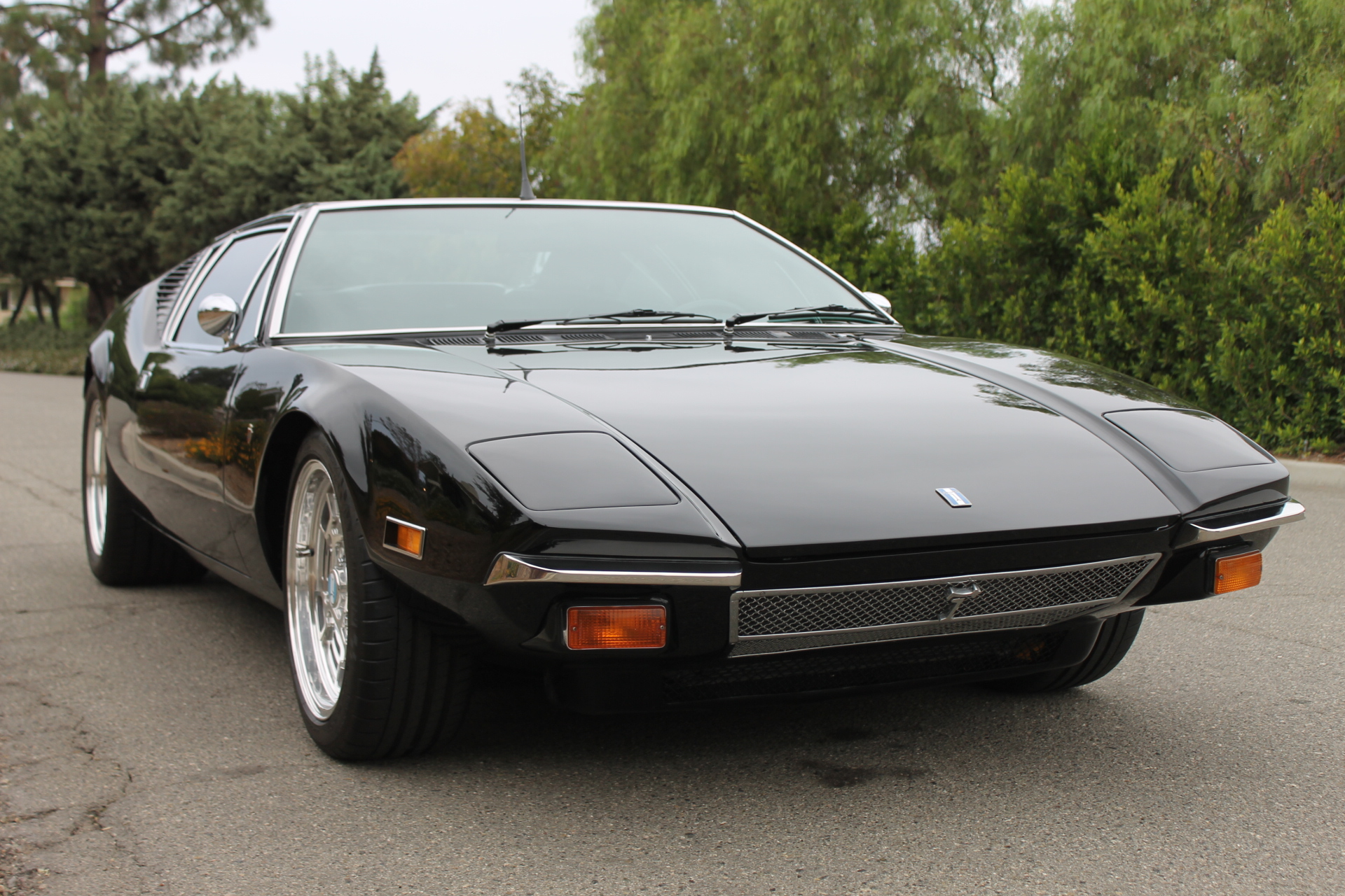 Polished 17″ aftermarket wheels wear Pantera center caps and are mounted with 225/45 Michelin Pilot Super Sport front and 335/35 Michelin Pilot Sport rear tires. The suspension was overhauled according to the selling dealer, and Wilwood brake calipers and rotors are fitted at each corner.