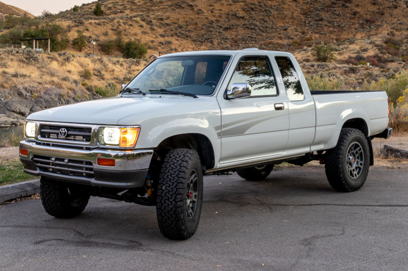 TRD Pro 17″ alloy wheels and 255/75 BFGoodrich All-Terrain T/A K02 tires were installed following the seller’s acquisition. Aisin locking front hubs were installed with ARP hardware and the factory axle-disconnect system was removed and replaced with a single-piece axle assembly sourced from a non-ADD truck. The truck is equipped with Bilstein shocks and stopping power is provided by front discs and rear drum brakes. The passenger side axle and CV joints were replaced along with heavy-duty rear axle shafts, bearings and seals.