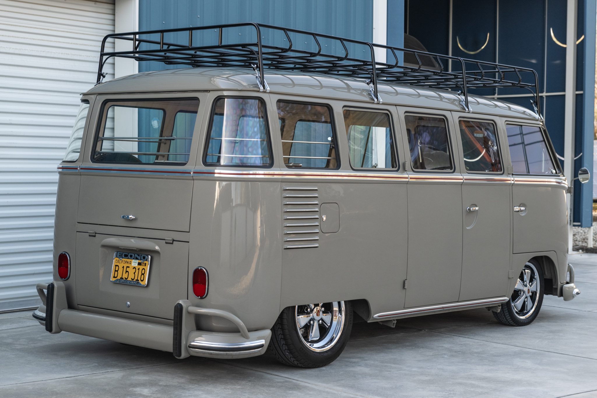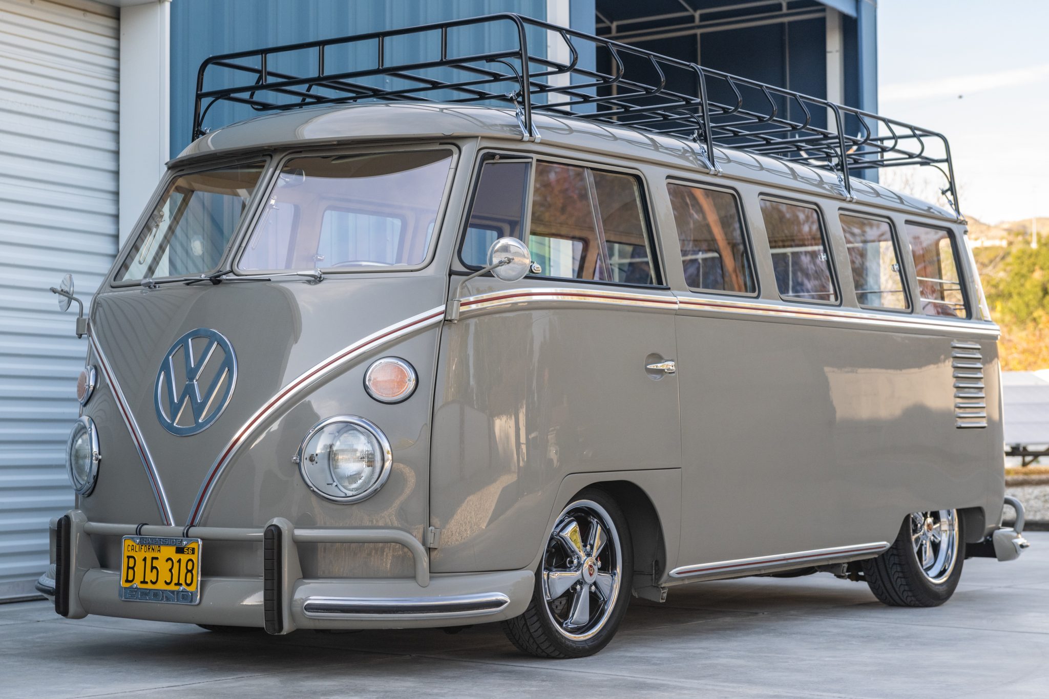 Chrome 15″ and 16″ Fuchs wheels are wrapped in 165/50 Federal Formoza front and 205/55 Pirelli rear tires. The van is also equipped with a 4″ narrowed front ball joint beam, adjustable Spax shocks, and four-wheel Wilwood disc brakes with red calipers.