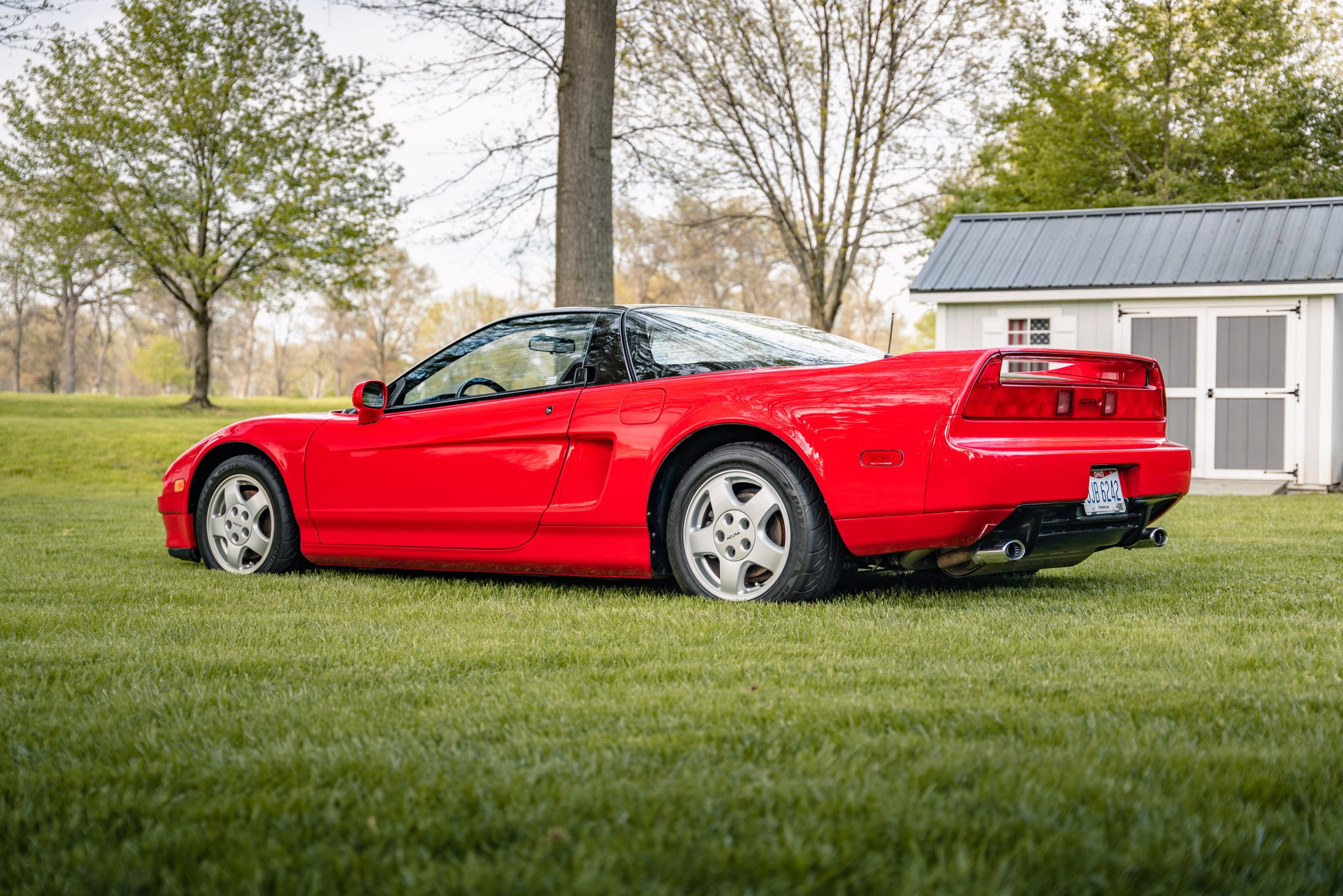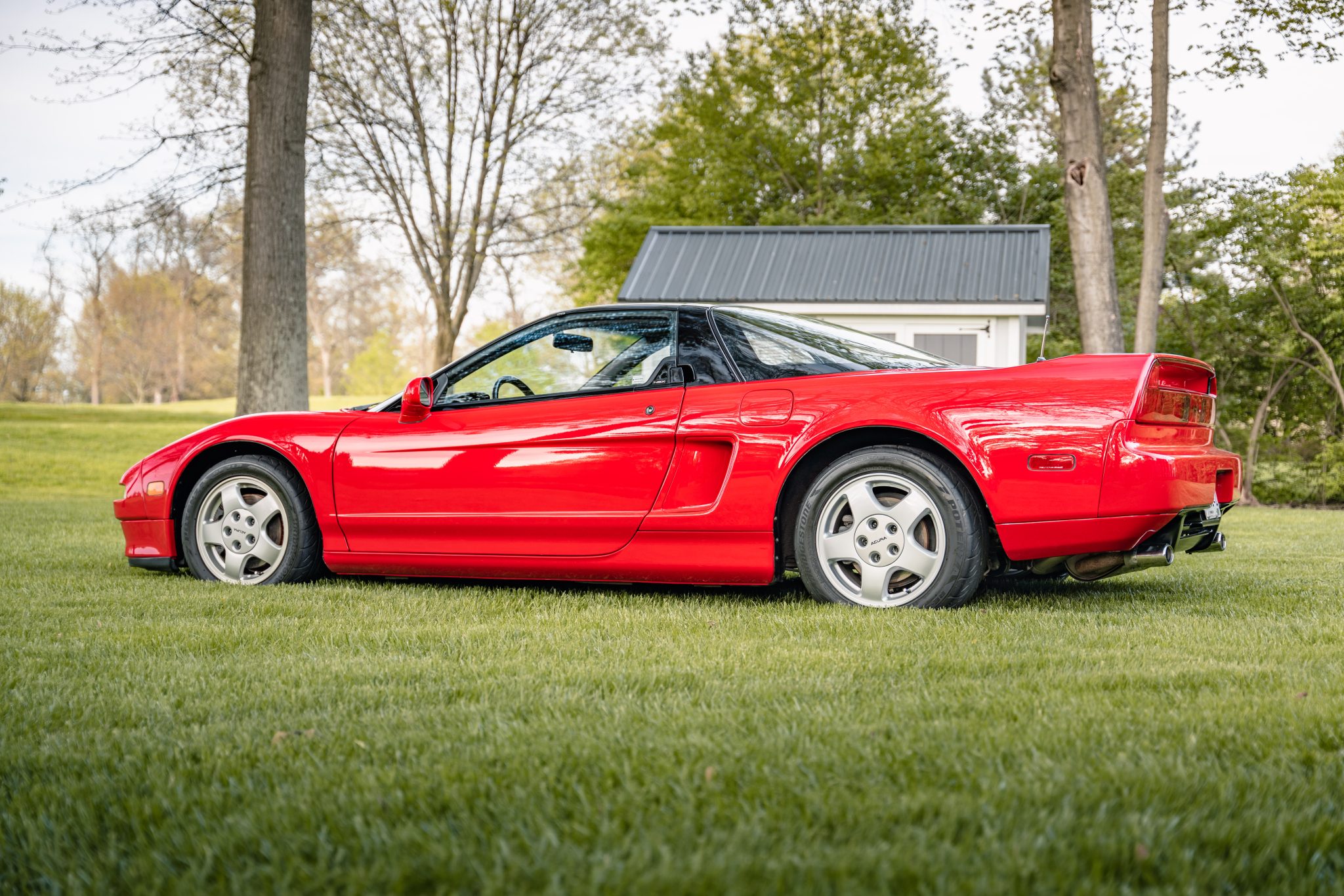 Staggered-diameter 15″ and 16″ five-spoke forged wheels are mounted with Bridgestone Potenza RE-71R tires measuring 205/50 up front and 225/50 at the rear. The car features a four-wheel double-wishbone suspension with front and rear stabilizer bars, and braking is handled by NSX-branded calipers over vented rotors at each corner. Replacement CV boots were reportedly installed in January 2020.