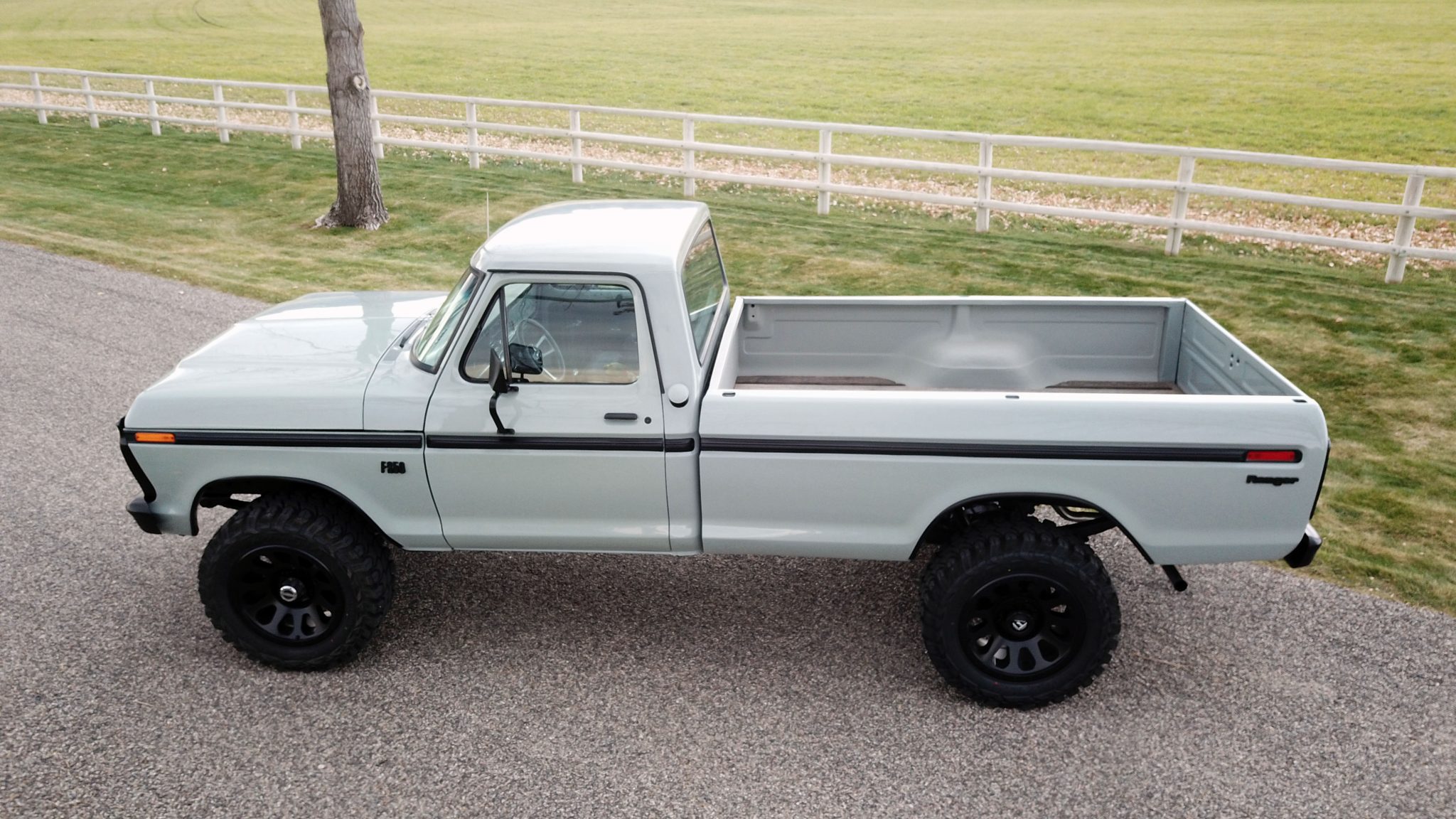 The interior bed panels were refinished with a body-color Raptor coating, and the selling dealer states that reclaimed wood planks were used for the bed floor.