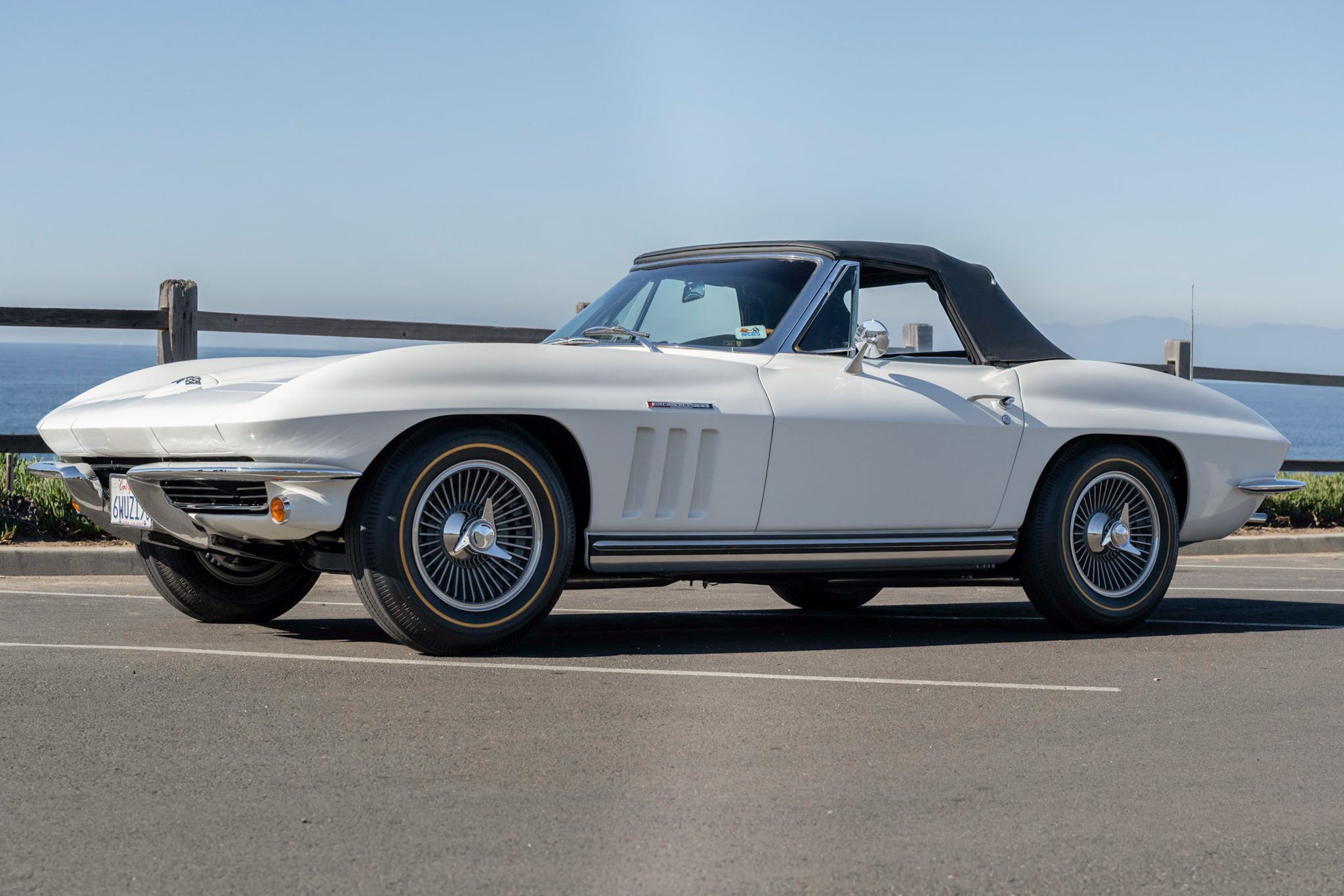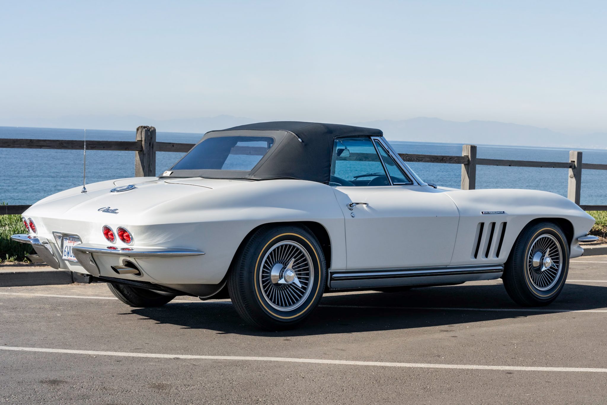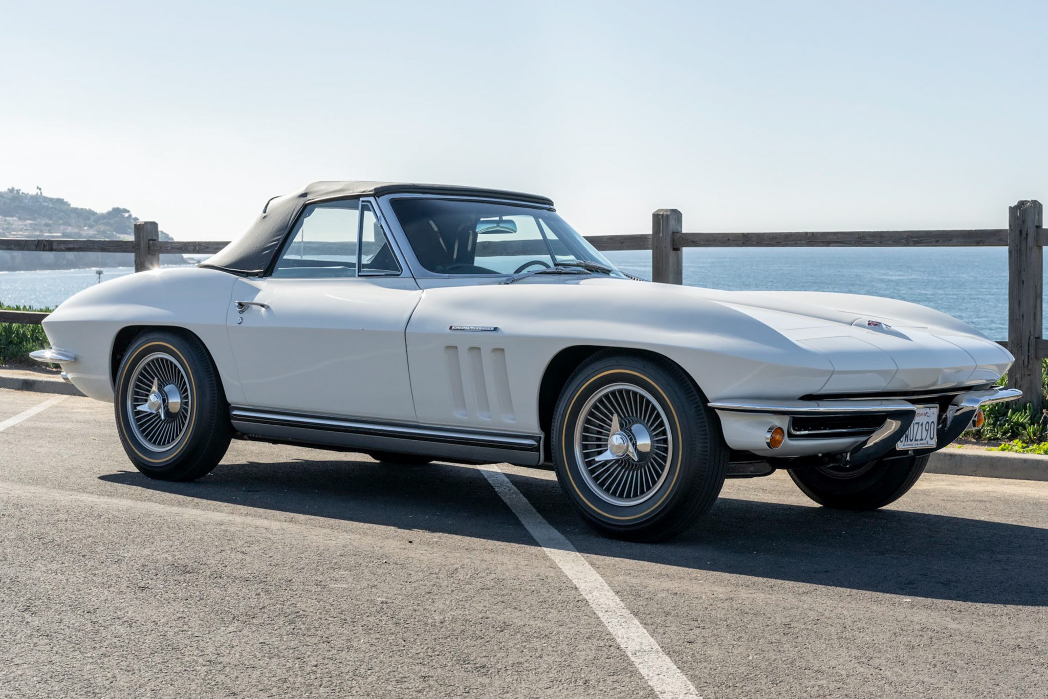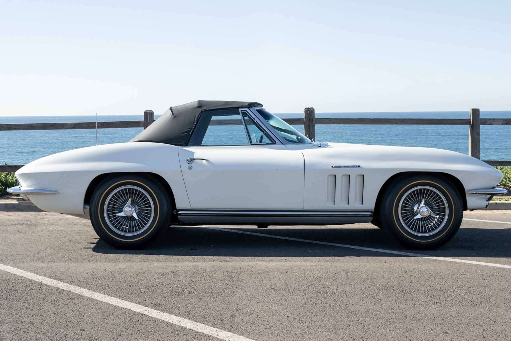 Turbine-style 15″ knockoff wheels are wrapped in 7.75-15 BFGoodrich Silvertown gold-line tires. The car is equipped with a fully independent suspension and four-wheel disc brakes. The seller notes that one brake caliper was replaced under current ownership.