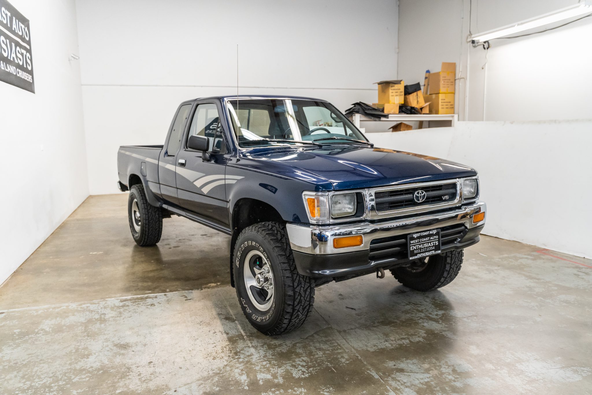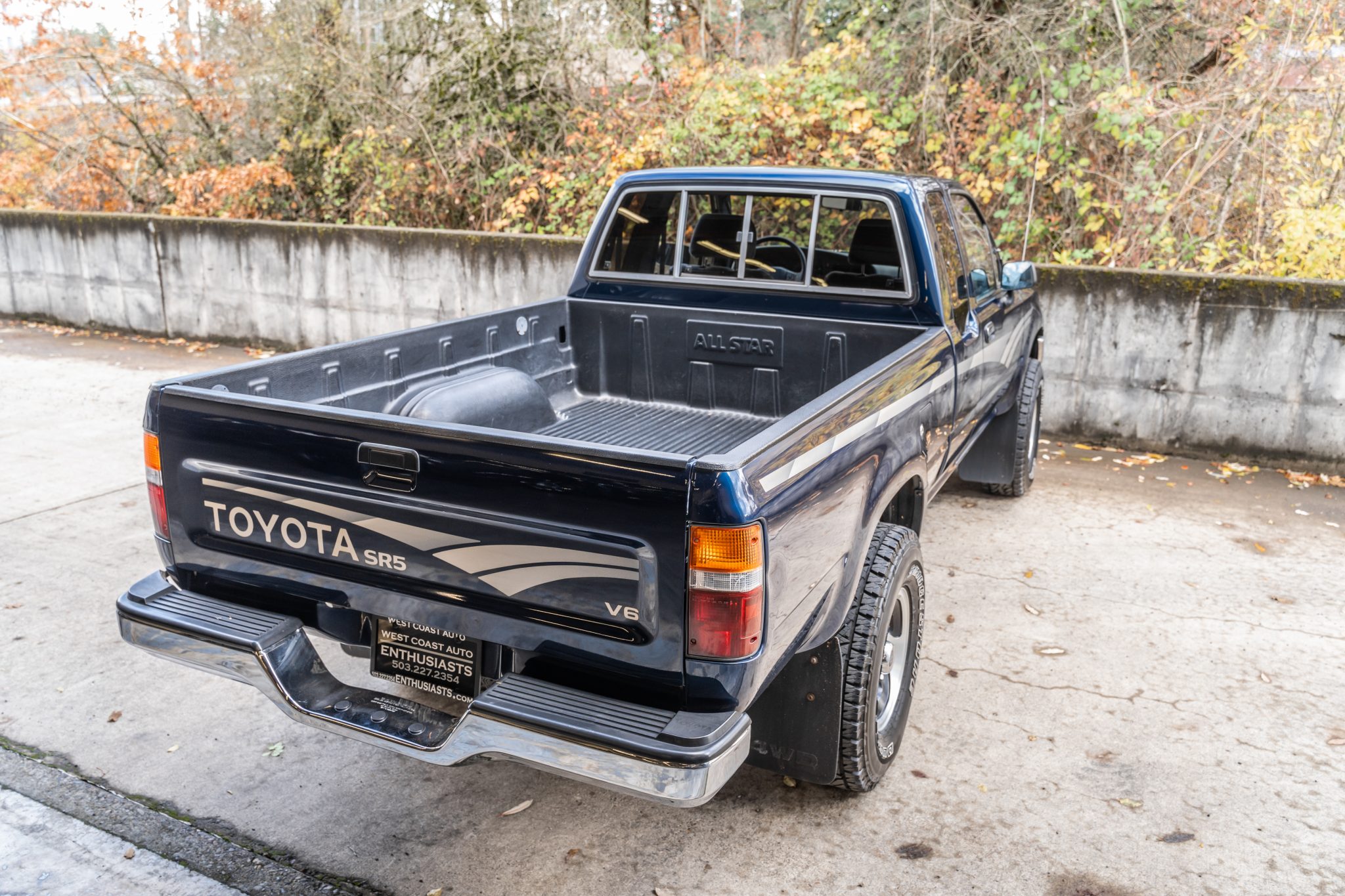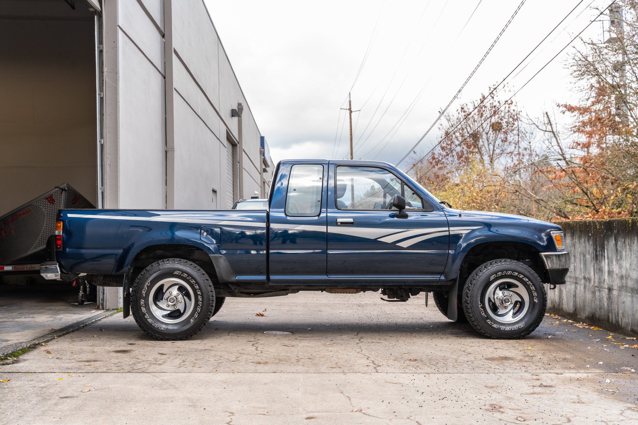 Three-spoke 15″ alloy wheels are mounted with Bridgestone Dueller A/T tires, and a spare is mounted under the bed. Braking is provided by front discs and rear drums. Factory steel wheels mounted with studded snow tires are included in the sale and pictured in the gallery.