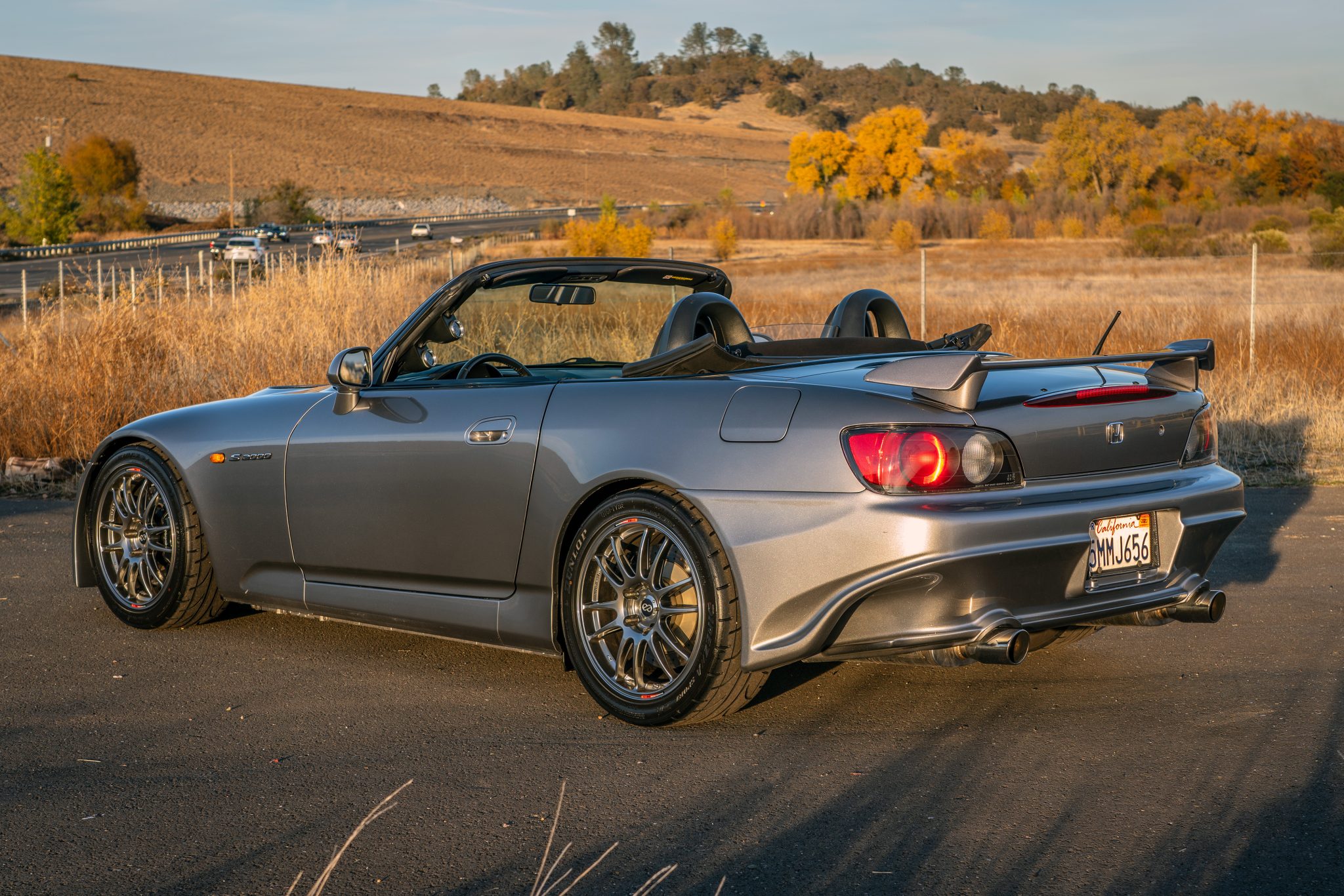 Enkei GTC01 17″ wheels are mounted with Dunlop Direzza Sport Z1 tires that measure 225/45 up front and 245/40 at the rear. Stopping power is handled by Brembo front calipers over drilled rotors and the car is equipped with Tein Flex Z coilover shock absorbers. A full-size spare is stored in the trunk.