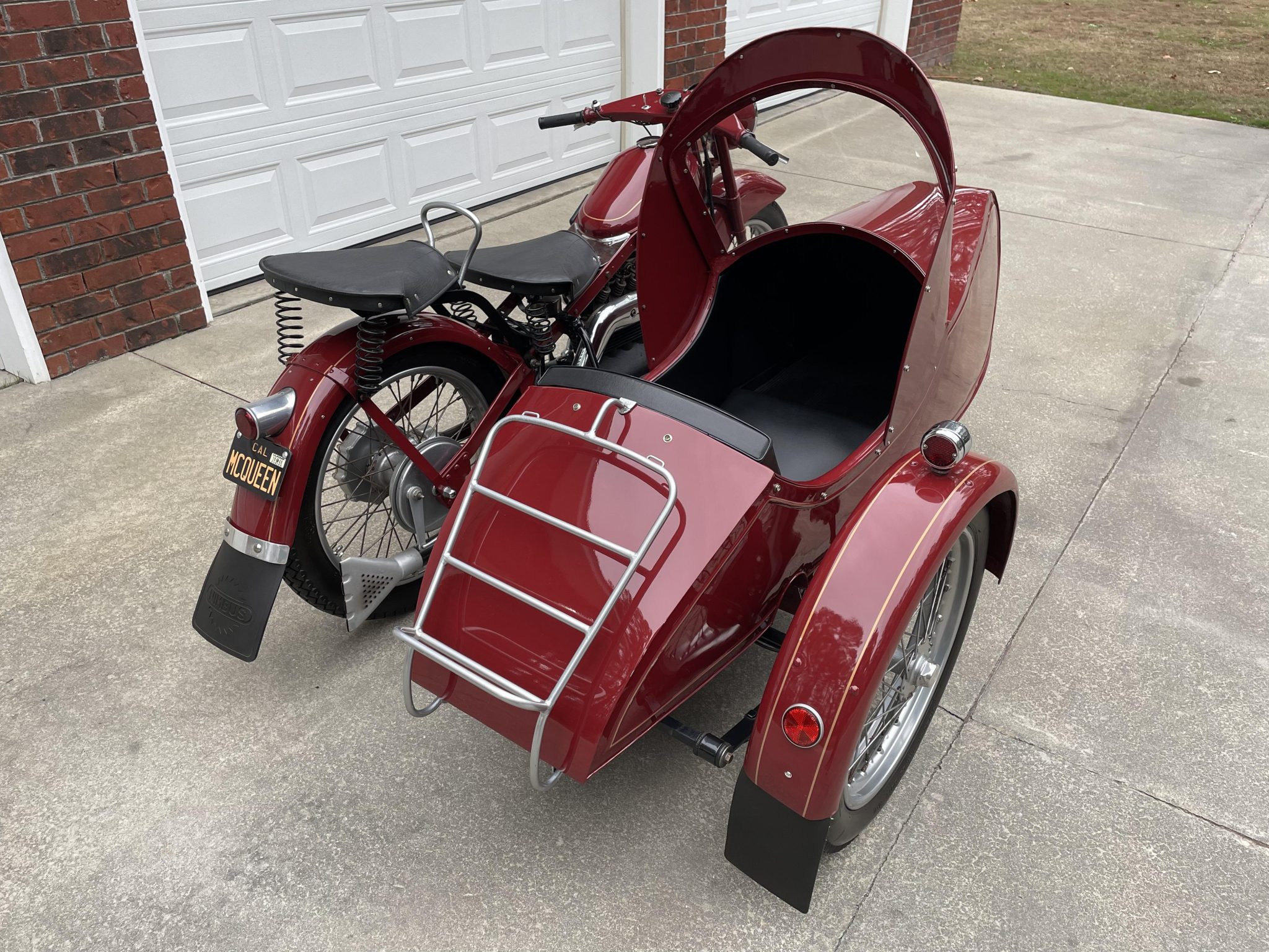 Silver-finished 19″ rims wearing Avon Safety Mileage MkII tires are laced to hubs equipped with 180mm drum brakes at both ends. An oil-damped telescopic fork with black rubber gaiters as well as dual springs beneath the seats comprise the bike’s only suspension.