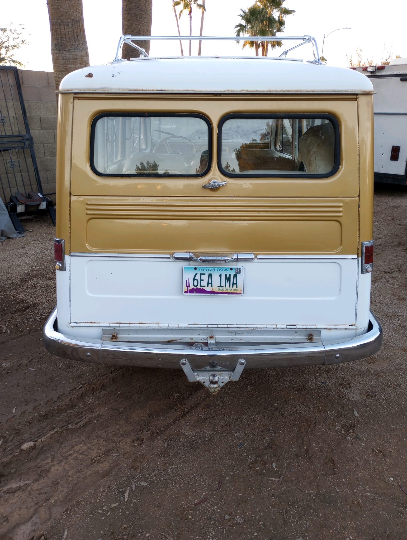 White-painted 15″ steel wheels are mounted with Deestone Extra Traction tires, and a spare is positioned in the rear cargo area. The truck is equipped with manually locking front hubs. The right-rear wheel cylinder was reportedly replaced and the brakes bled under current ownership.