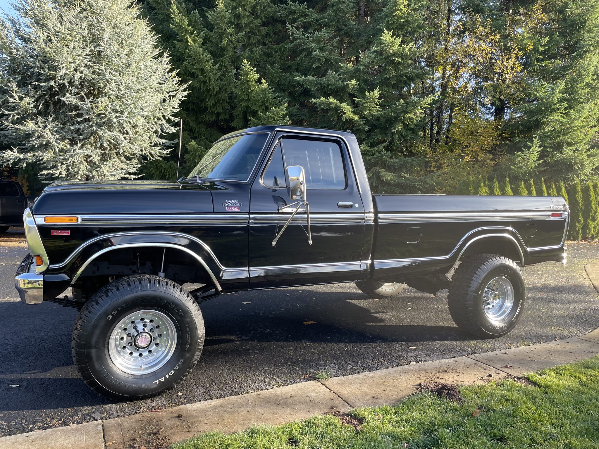 Alloy 16.5″ wheels are wrapped in 35×12.5″ Wild Country Radial TXR tires. The truck is equipped with power steering, locking front hubs, a 4″ suspension lift kit, Rough Country shocks,, polyurethane suspension bushings, and front and rear sway bars. Braking is handled by power-assisted front discs and rear drums. The seller states that the front brake calipers, pads, and rear wheel cylinders have been replaced, along with the steering drag link and leaf springs.