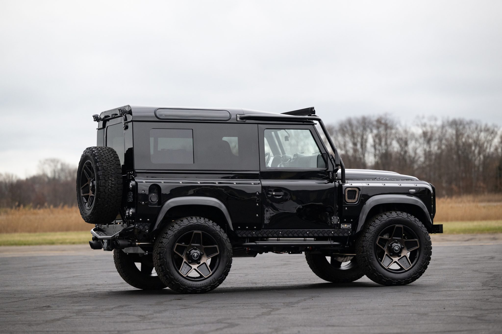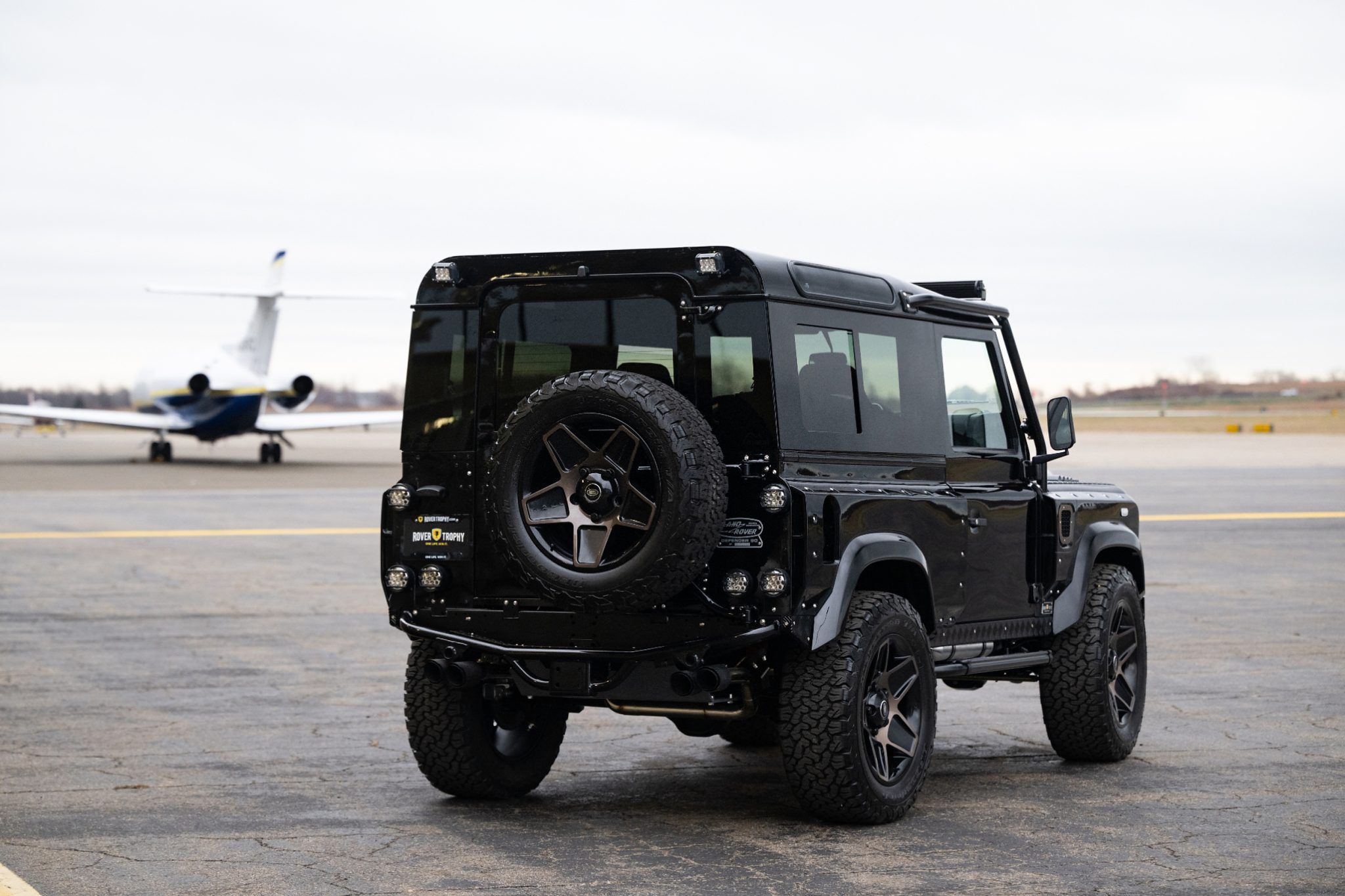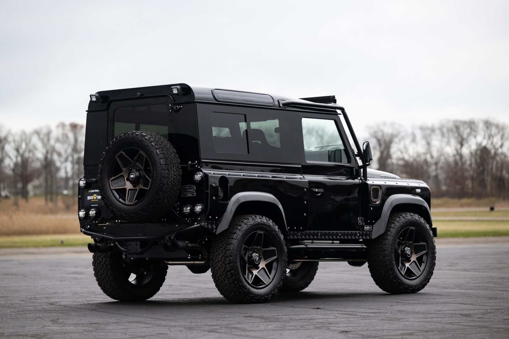 Project Kahn Mondial 20″ wheels feature Land Rover center caps and bronze accents and wear 285/60 BFGoodrich All-Terrain T/A K02 tires that were mounted in April 2022. A matching spare is affixed to the swing-out rear tailgate. The truck is equipped with Old Man Emu suspension components, Terrafirma steering rods, and an air suspension with adjustable ride height and a compressor mounted beneath the vehicle. The power steering pump was replaced. Stopping power is provided by LOF four-wheel disc brakes, and the brake servo and master cylinder were replaced in May 2022.
