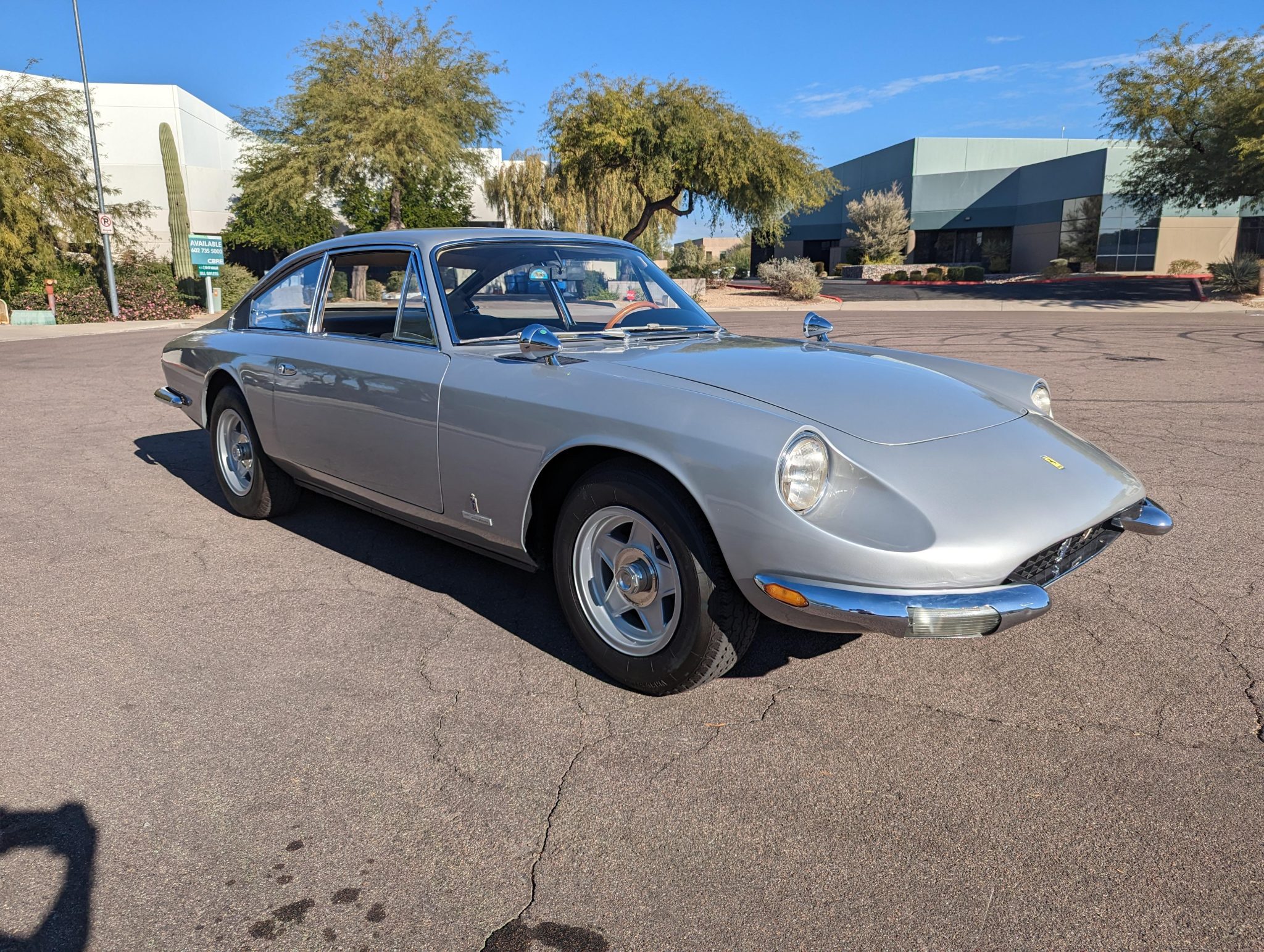 The 15″ five-spoke wheels wear Borrani knock-off hubs and are mounted with 215/70 Vredestein Sprint Classic tires. The 365 GT 2+2 model was the first Ferrari 2+2 offered with an independent rear suspension, and this example’s factory rear self-leveling system was removed in favor of Koni coilovers. Power-assisted four-wheel disc brakes were standard equipment, as was power steering.