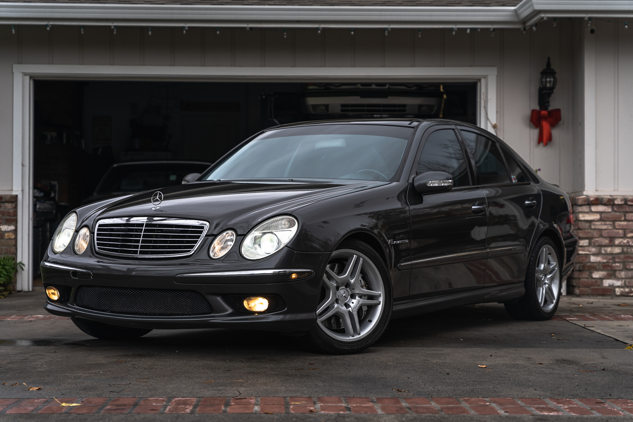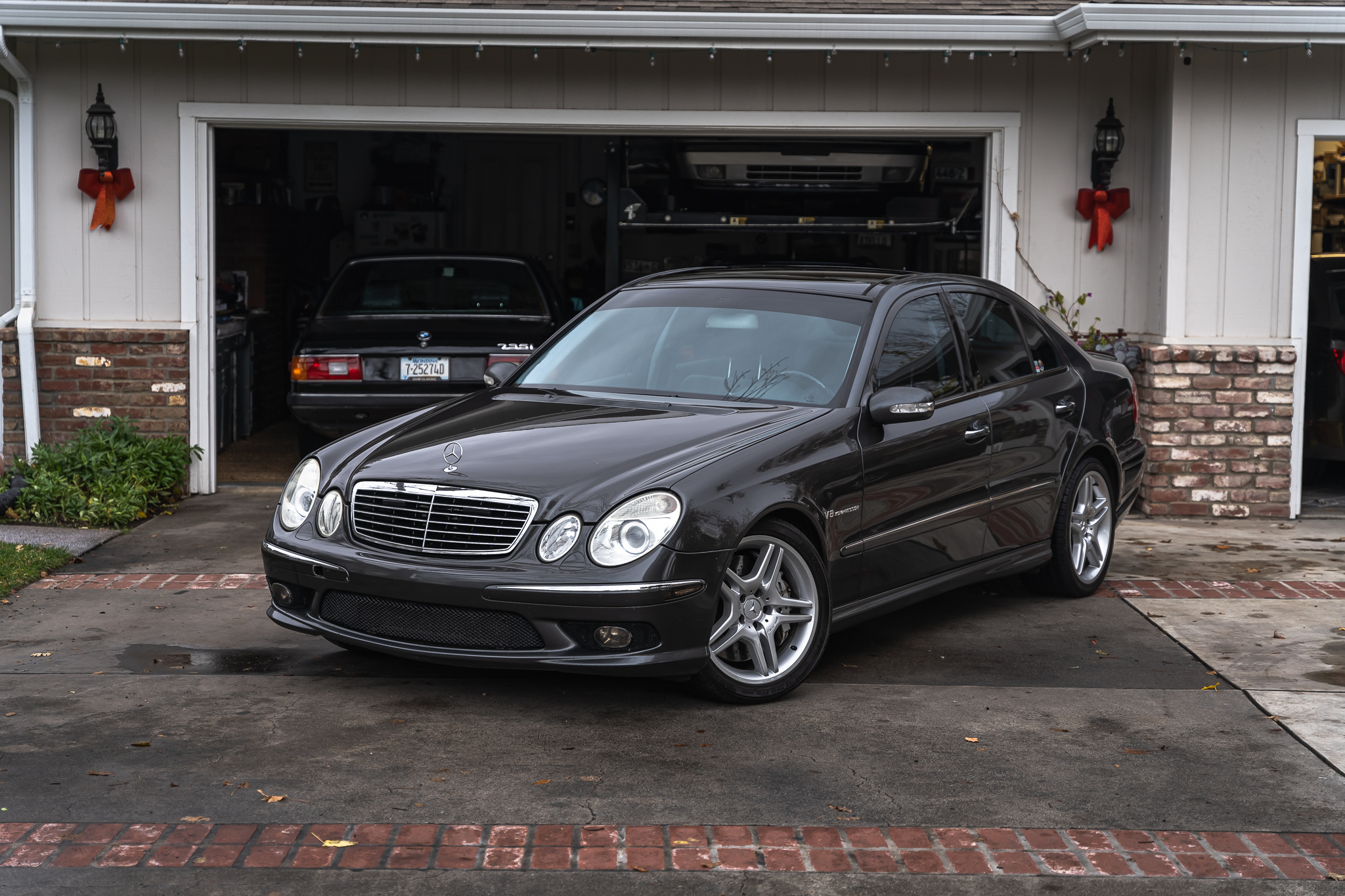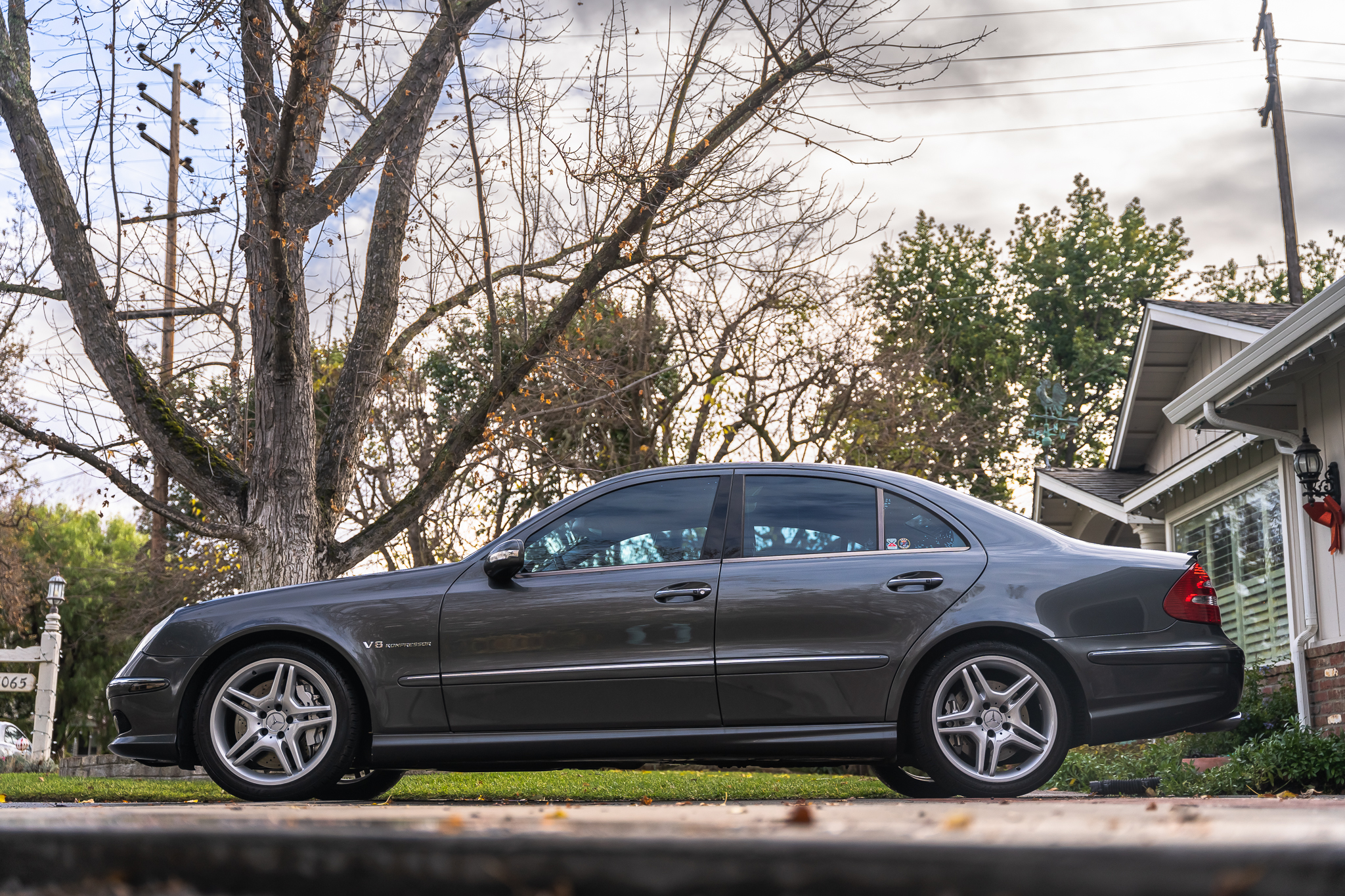 The 18″ AMG alloy wheels are mounted with Kuhmo Ecsta PA51 tires. The car is equipped with an AMG-tuned Airmatic dual-control air suspension, and stopping power is provided by cross-drilled and ventilated rotors at each corner. Work under current ownership has reportedly included overhauling the front suspension and replacing the control arms.
