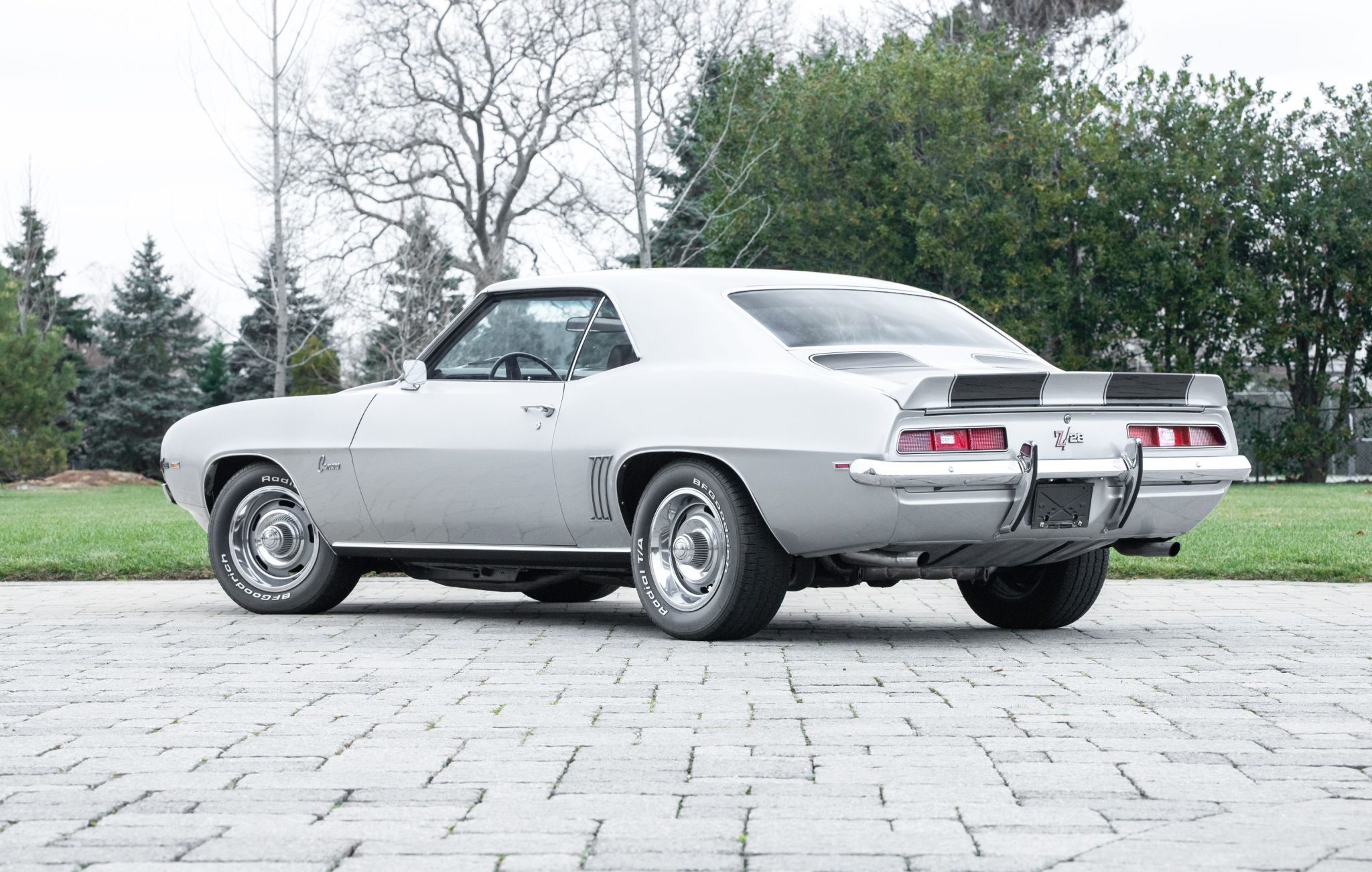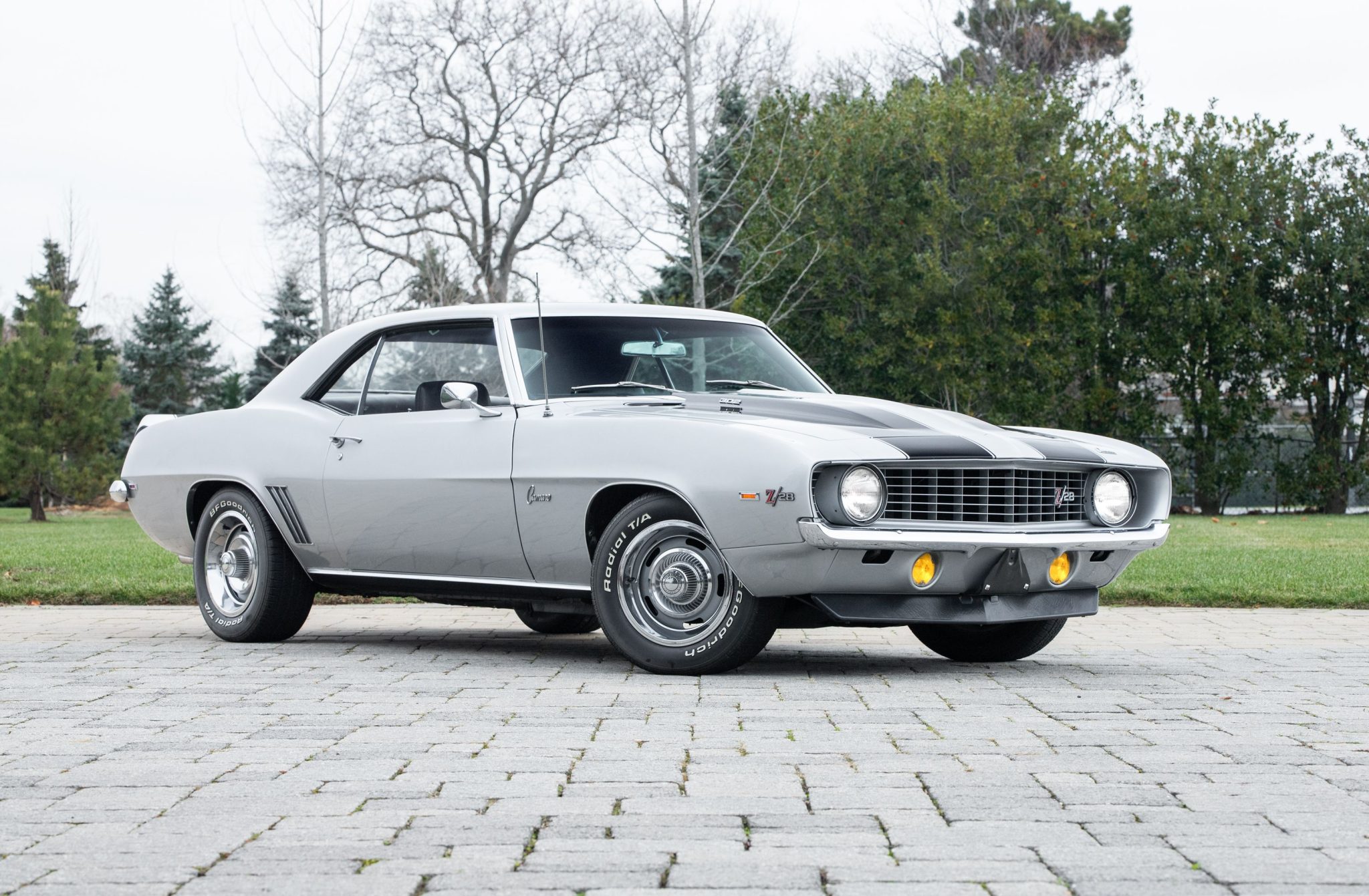 Rally-style 15″ wheels are finished in silver with bright trim rings and are wrapped in 235/60 BFGoodrich Radial T/A tires. The front disc and rear drum brakes were serviced in February 2022.