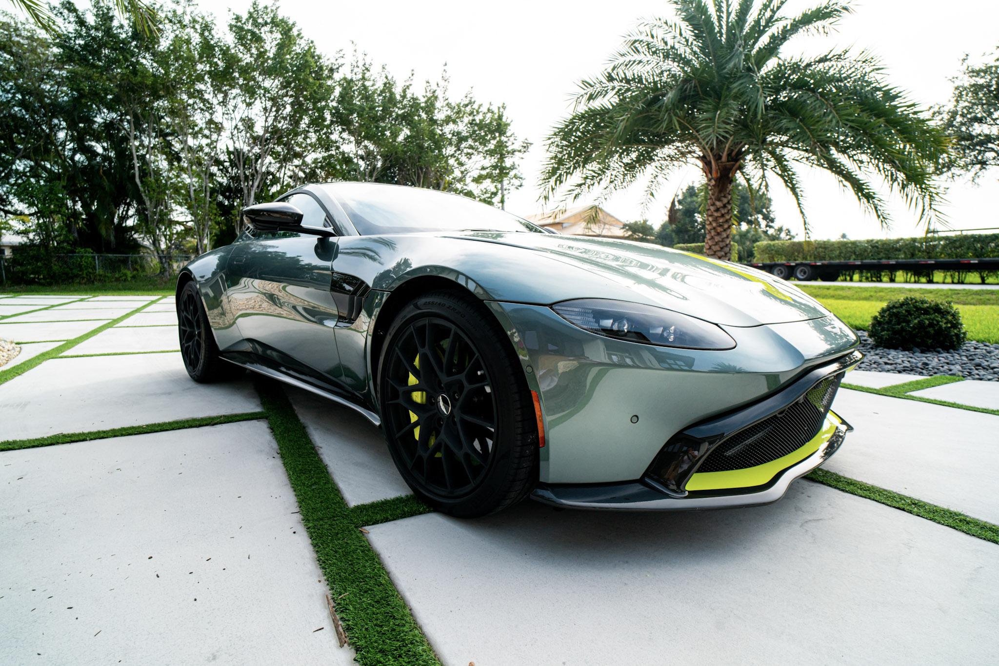 Forged 20″ AMR wheels are finished in Textured Black and wrapped in staggered-width Pirelli P Zero tires. Braking is handled by Lime-finished Brembo calipers over carbon-ceramic rotors at each corner. The car is equipped with a three-stage Skyhook Adaptive Damping System, Dynamic Stability Control, Traction Control, Electronic Brakeforce Distribution, and Emergency Brake Assist.