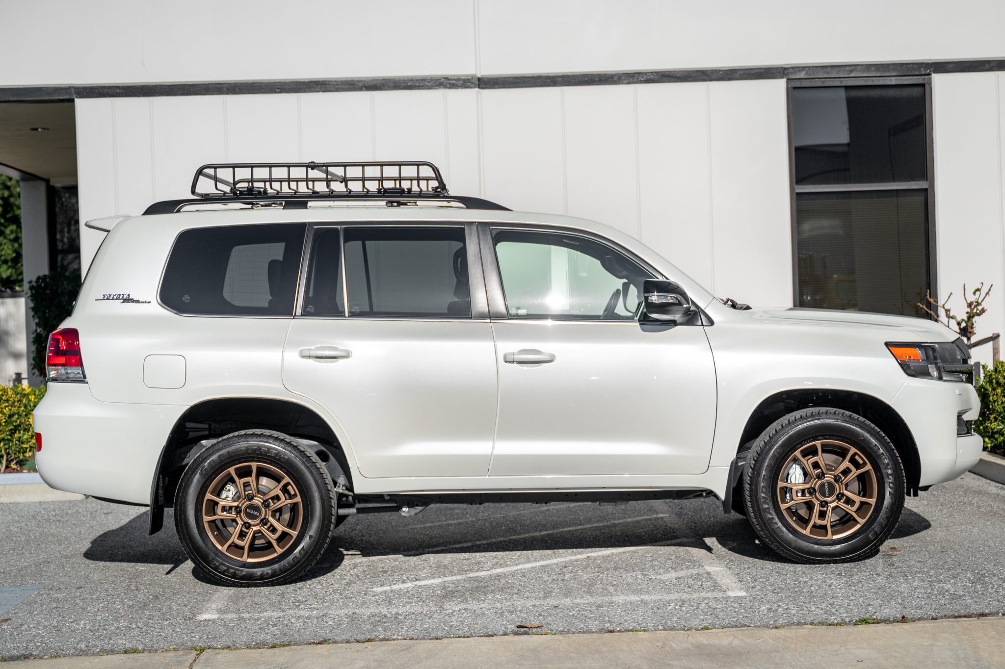 Bronze-finished 18″ BBS forged wheels wear 285/60 Dunlop AT23 Grandtrek tires. The truck was factory-equipped with Multi-Terrain Select (MTS), a Kinetic Dynamic Suspension System (KDSS), and CRAWL control with off-road turn assist.