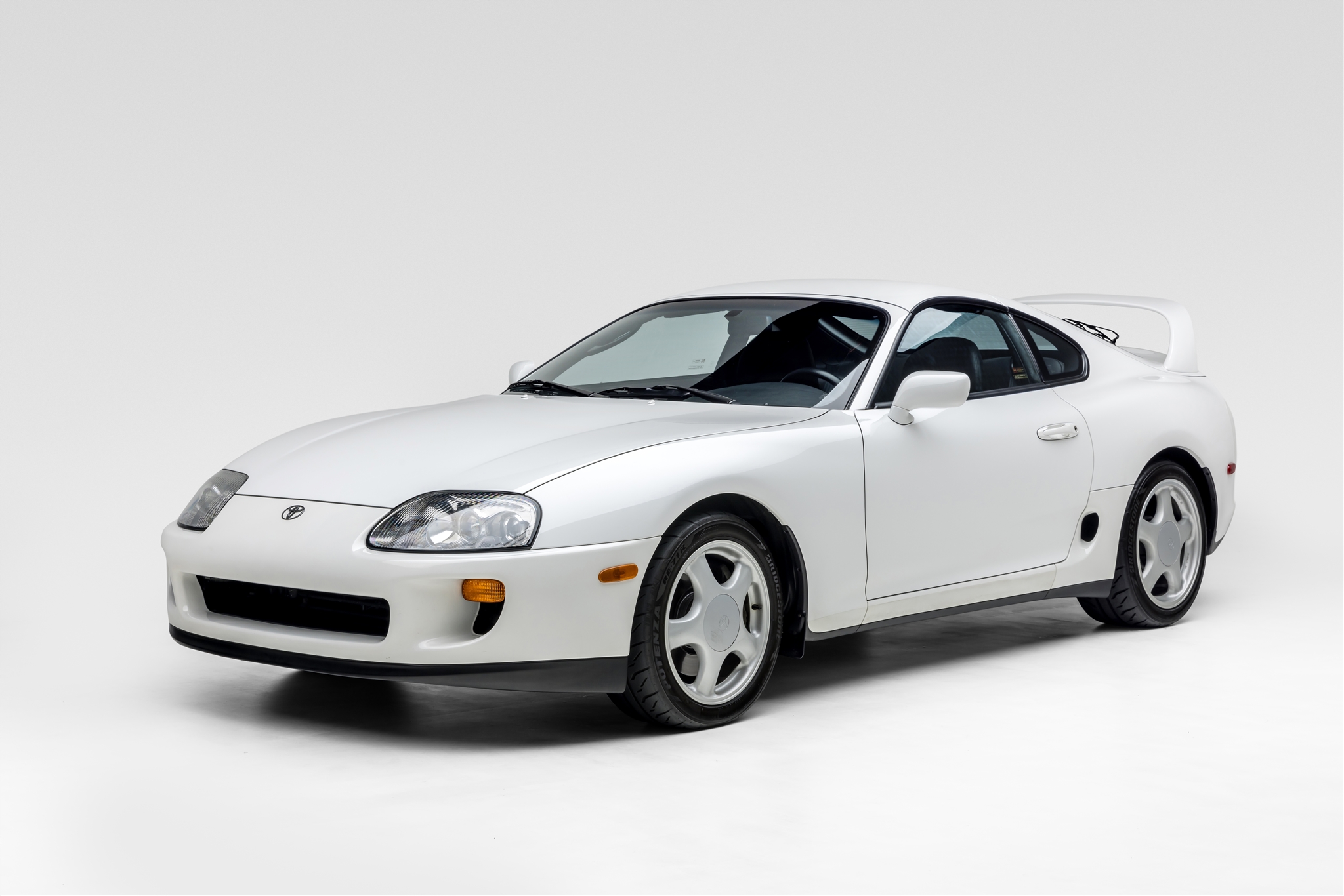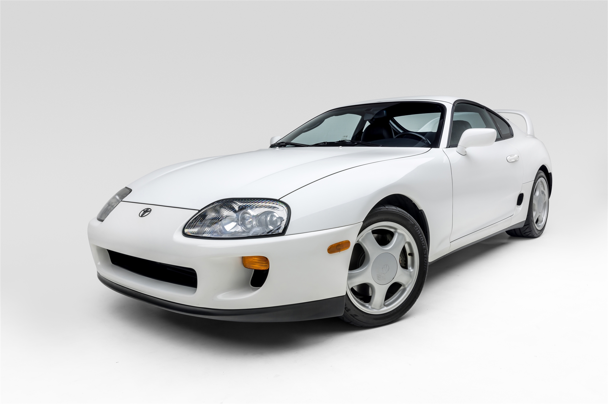 Silver-finished 17″ five-spoke alloy wheels were mounted with 235/40 front and 255/40 rear Bridgestone Potenza RE-71R tires in February 2020. The car rides on a four-wheel double-wishbone suspension system and features speed-sensing progressive power rack-and-pinion steering and electronic traction control. Anti-lock braking is provided by a Supra-logo caliper and ventilated disc at each corner.