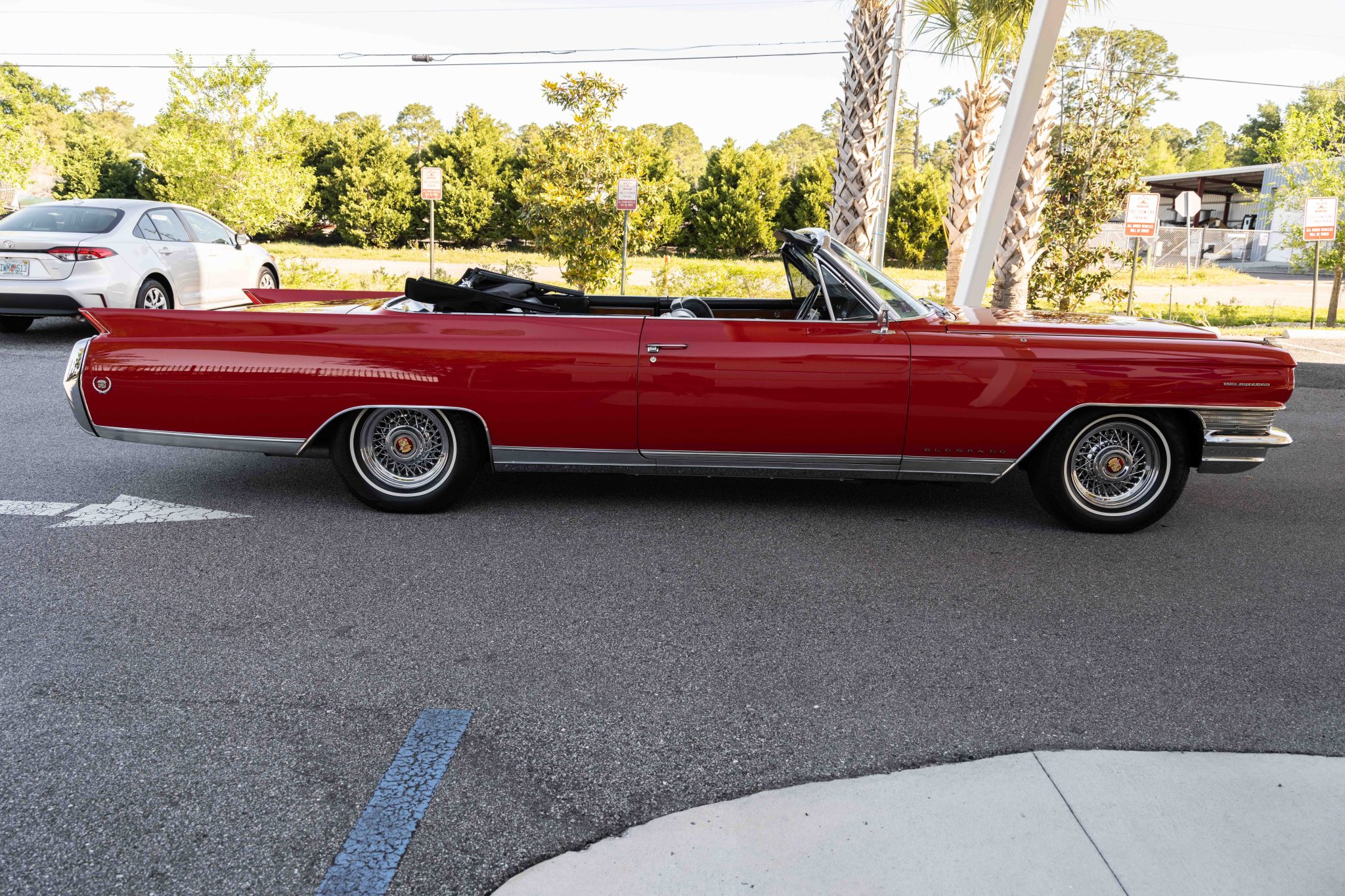 Chrome-finished 14″ wire wheels are wrapped in Hankook Optimo H724 thin whitewall tires. A spare is mounted in the trunk. The RideTech RidePro air suspension system utilizes a pump, a five-gallon tank, and solenoids mounted in the trunk. Braking is handled by four-wheel discs with a custom hydroboost.