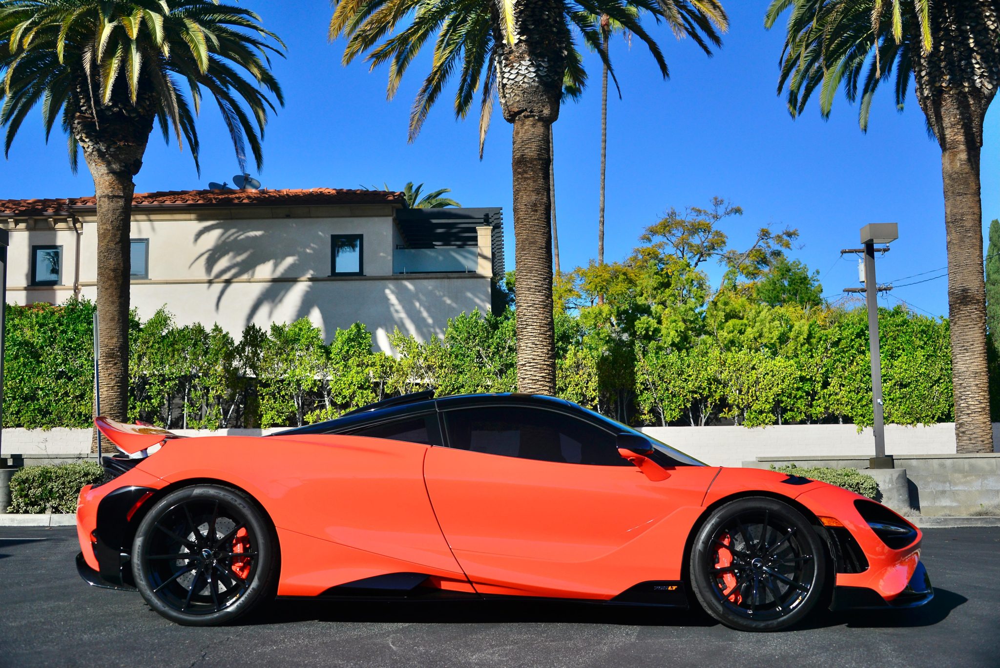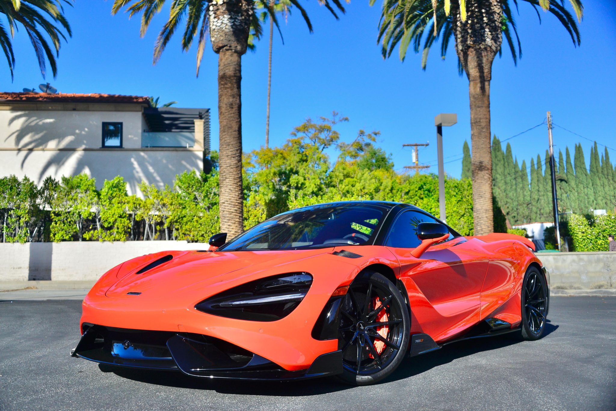 Black-finished 19″ and 20″ forged alloy wheels with laser-etched 765LT branding and titanium mounting bolts are wrapped in 245/35 front and 305/30 rear Pirelli P Zero Trofeo R tires. The double-wishbone independent suspension features McLaren active damping, and the 765LT was equipped with a stiffened steering torsion bar and a quick-ratio steering rack as compared to the 720S. The car is equipped with an optional vehicle-lift system, and braking is provided by Nardo Orange-finished calipers mounted over carbon-ceramic rotors. The rear tires were replaced in October 2022.