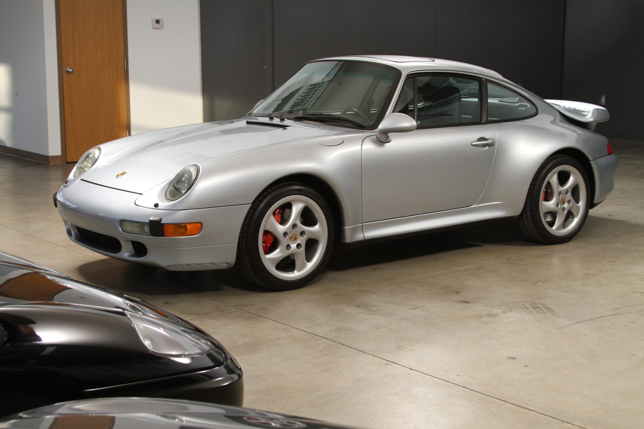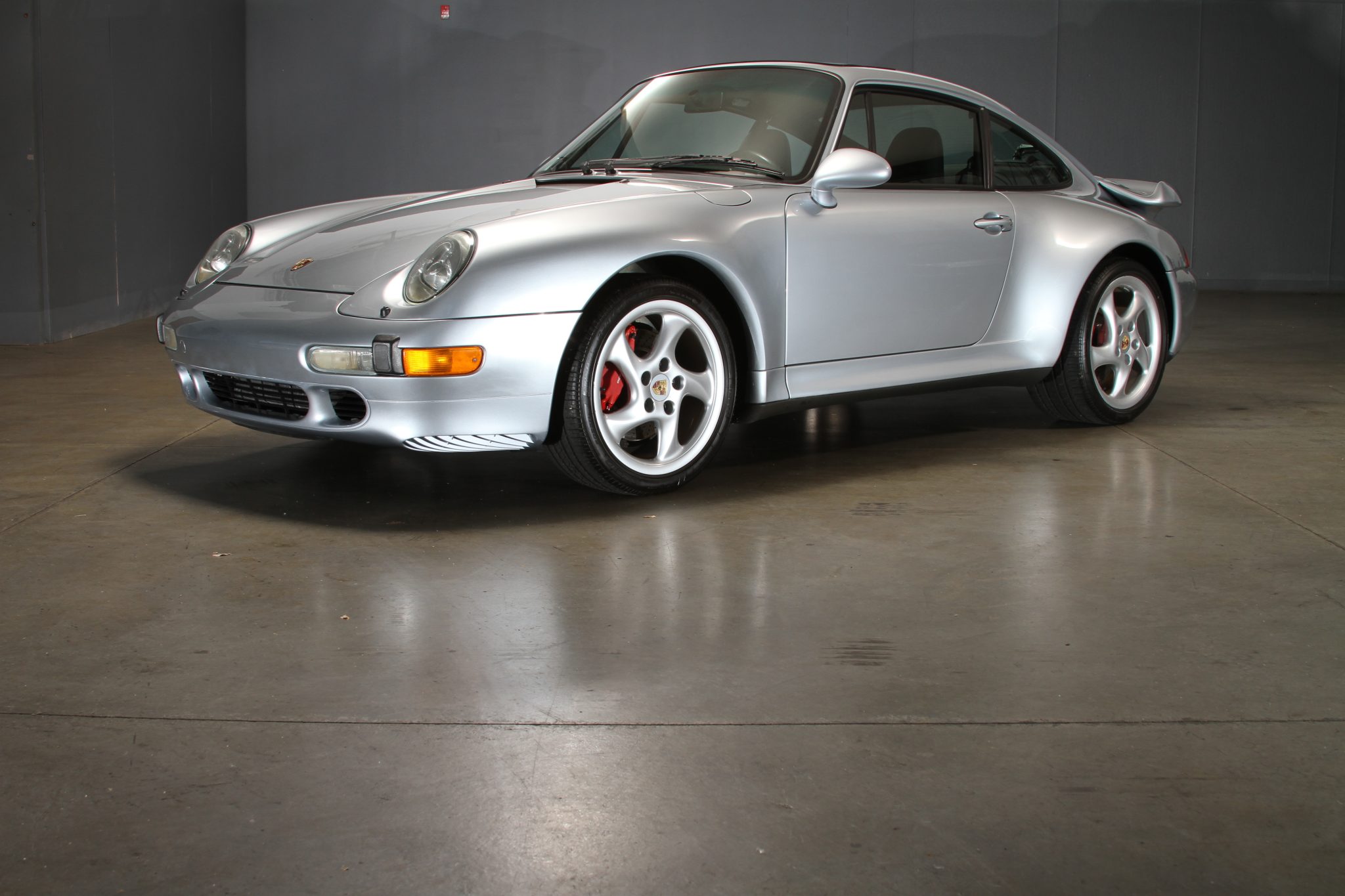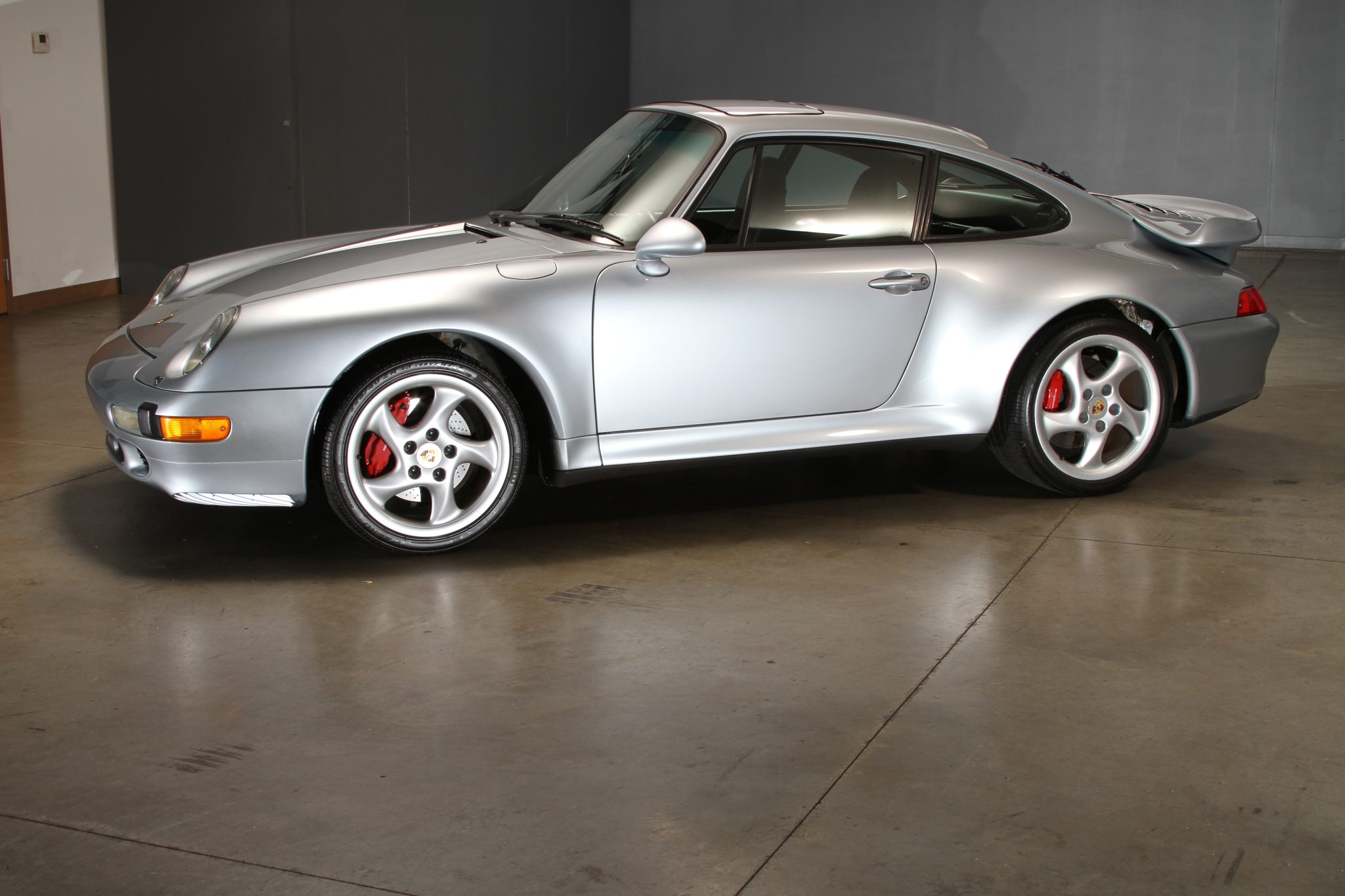 The 18″ Turbo Twist wheels are mounted with Pirelli P Zero Rosso tires that were installed in December 2022. The car features an Automatic Brake Differential (ABD), and the 993 was the first 911 to feature multi-link rear suspension. Braking is provided by Porsche-branded four-piston calipers over cross-drilled rotors.