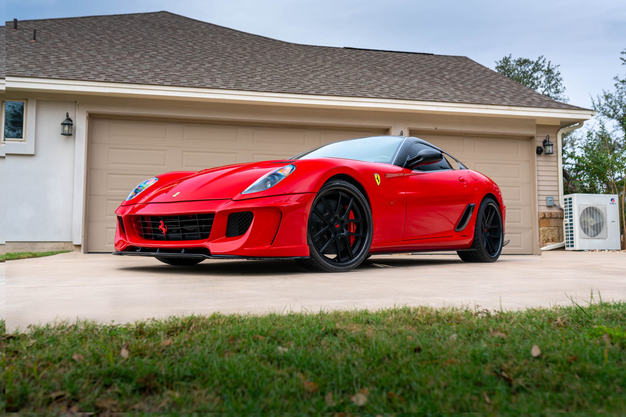 Staggered-diameter 20″ and 21″ carbon-fiber wheels are finished in black and mounted with Pirelli P Zero tires. The suspension features magnetorheological dampers. Stopping power is provided by Ferrari-branded multi-piston brake calipers over cross-drilled and ventilated ceramic-composite rotors at each corner.