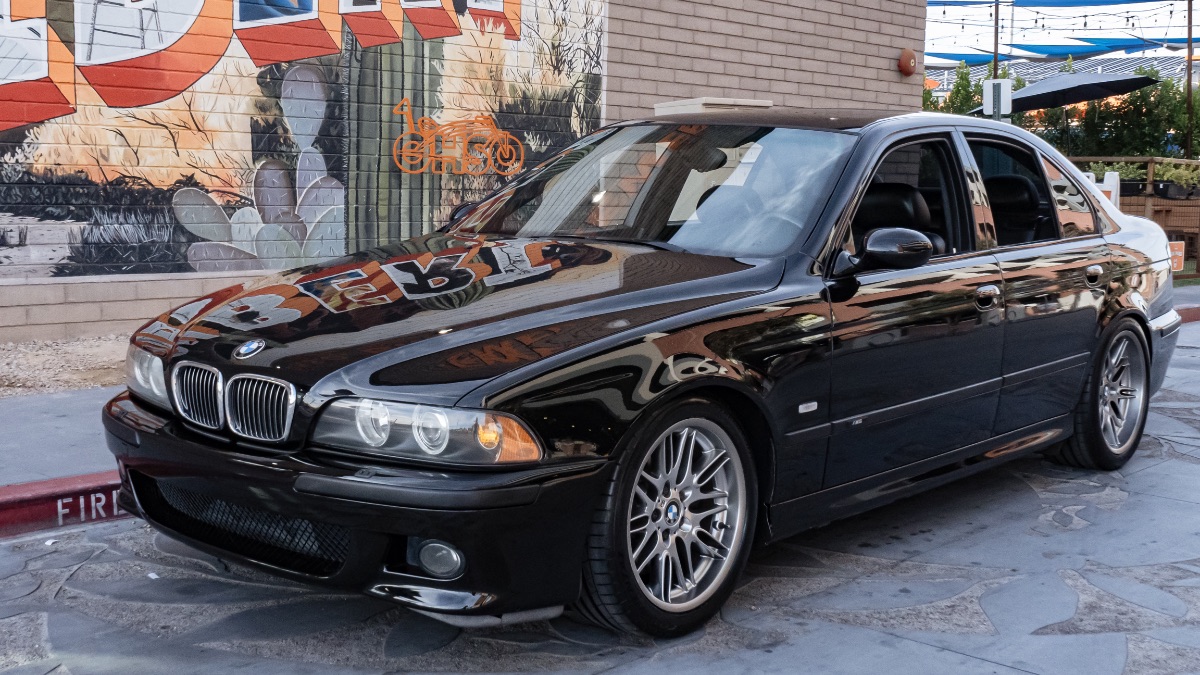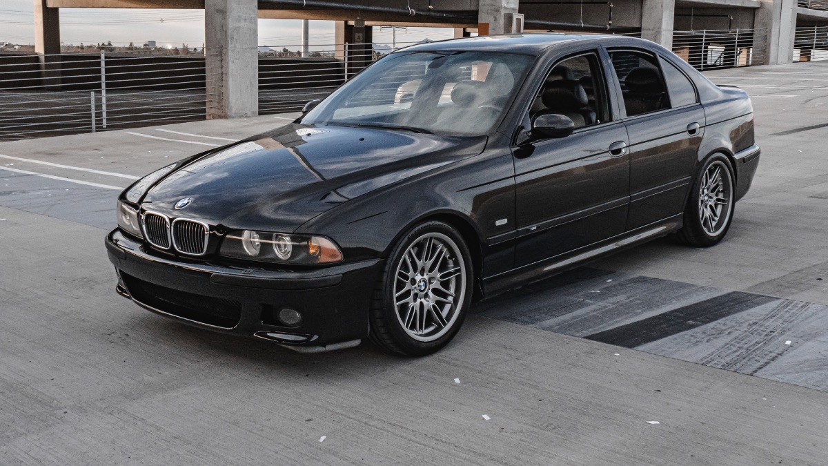 Chrome Shadow 18″ Style 65 wheels are mounted with 245/40 front and 275/35 rear Continental ExtremeContact Sport tires mounted in December 2022. The seller notes curb marks on the left-front wheel. The car features Dynamic Stability Control (DSC) with All Season Traction. Dinan lowering springs were installed in 2018, Koni dampers were installed in 2019, and the steering angle sensor and front brake rotors were replaced in November 2022.