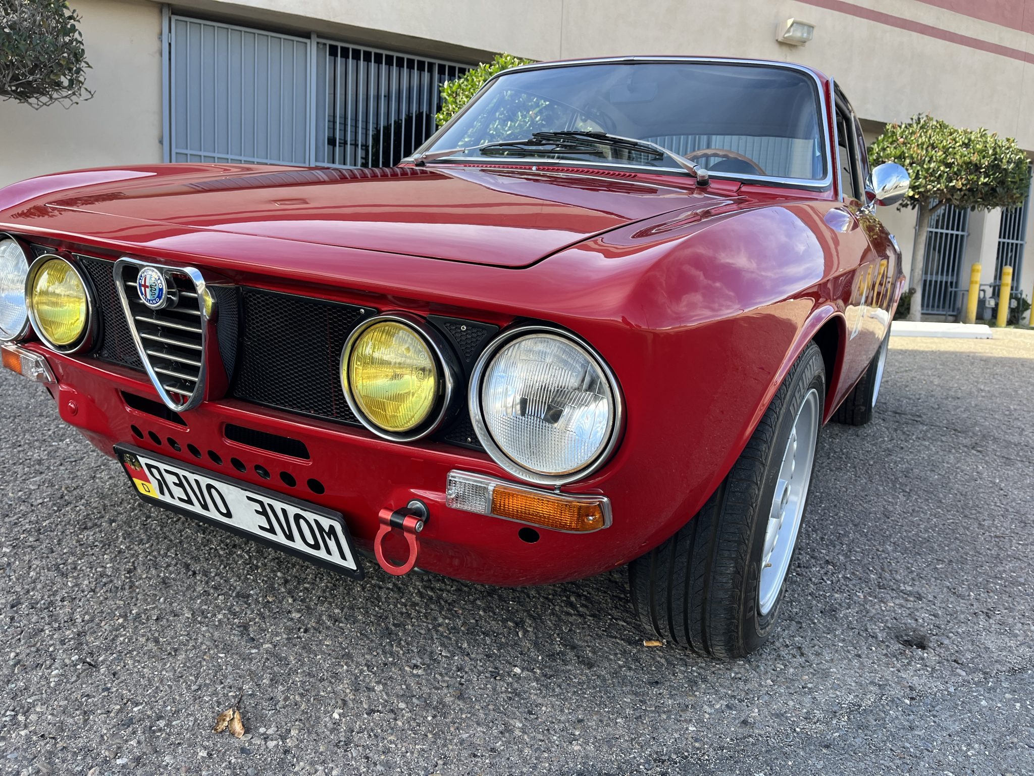 Silver-finished 15″ Alfaholics GTA Veloce-style wheels are mounted with 195/60 Delinte DH2 tires. Stopping power is provided by four-wheel disc brakes. Bilstein shocks are installed up front, and the upper control arms were replaced in June 2020.