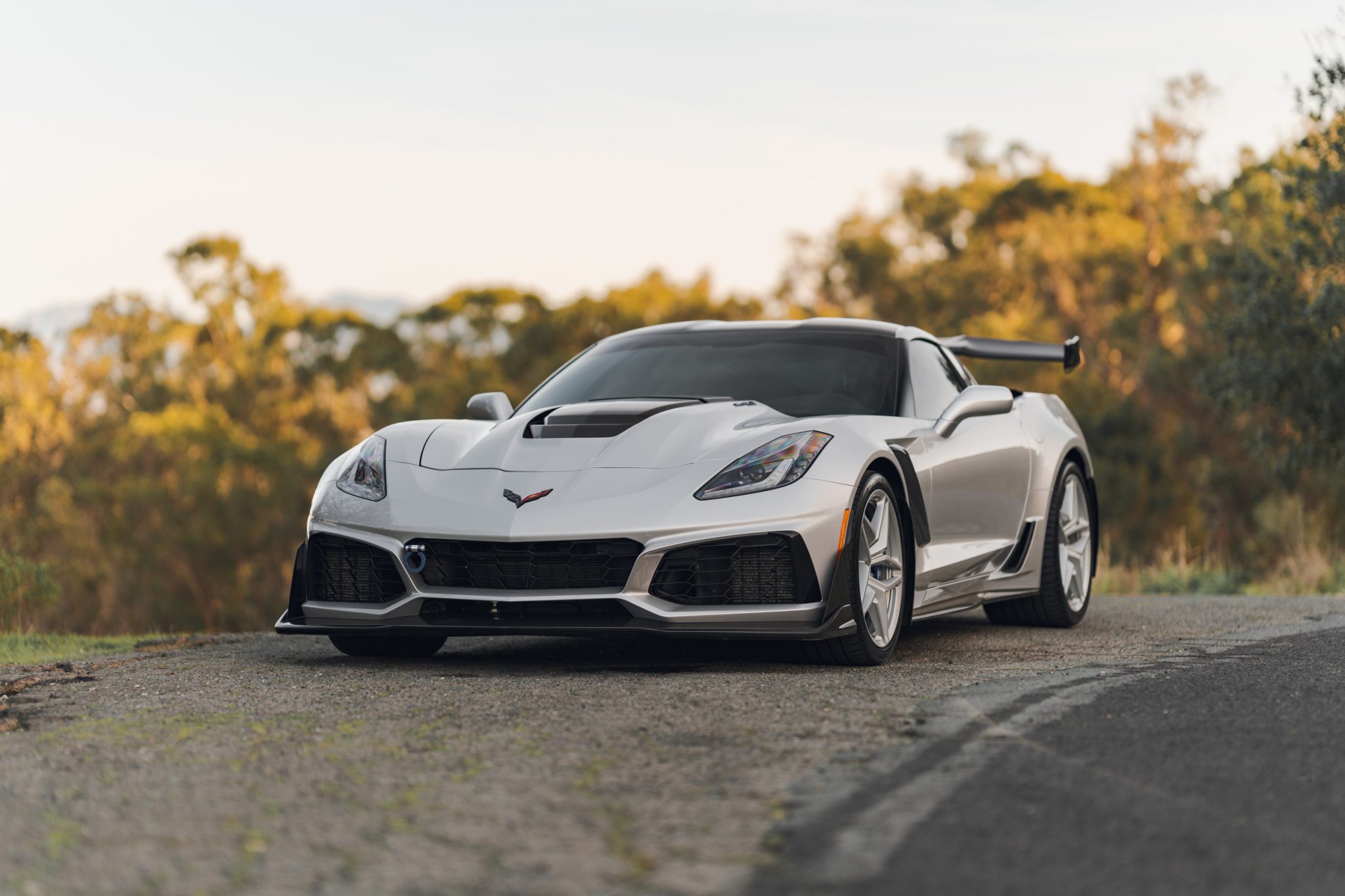Staggered-diameter Pearl Nickel-painted 19″ and 20″ 10-spoke wheels are mounted with Michelin Pilot Sport A/S 3+ tires. The ZTK Track Performance Package adds stiffer springs and performance tuning for the Magnetic Ride Control suspension. Stopping power is provided by cross-drilled carbon-ceramic discs with blue-finished Brembo calipers at each corner.