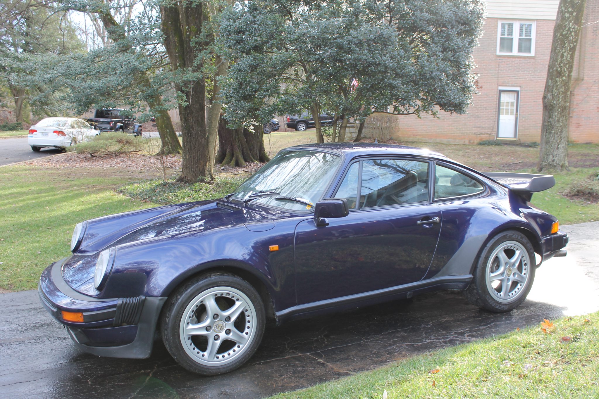 Modular 17″ 993 Targa wheels are mounted with an older set of Falken and Yokohama tires. Stopping power is provided by power-assisted four-wheel disc brakes with ventilated rotors, although the seller notes that the front brake calipers are frozen.