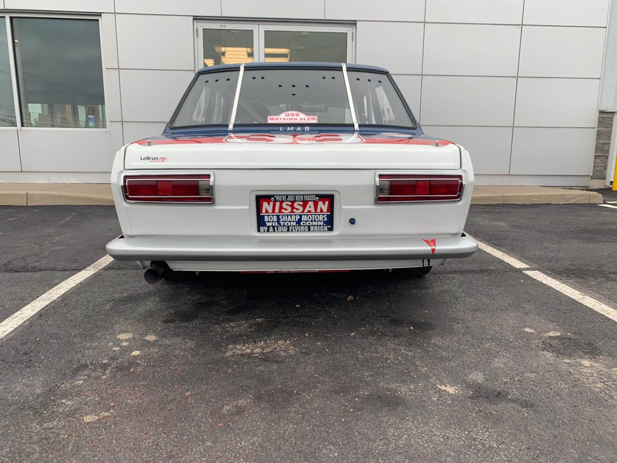 White-finished 13″ Panasport wheels are mounted with 205/60 Toyo Proxes RA1 tires that the seller notes have been shaved down. Braking power is provided by vented front discs with early Porsche 911S-sourced aluminum calipers along with Datsun 240Z-sourced rear drums. The seller notes that suspension components include the following: