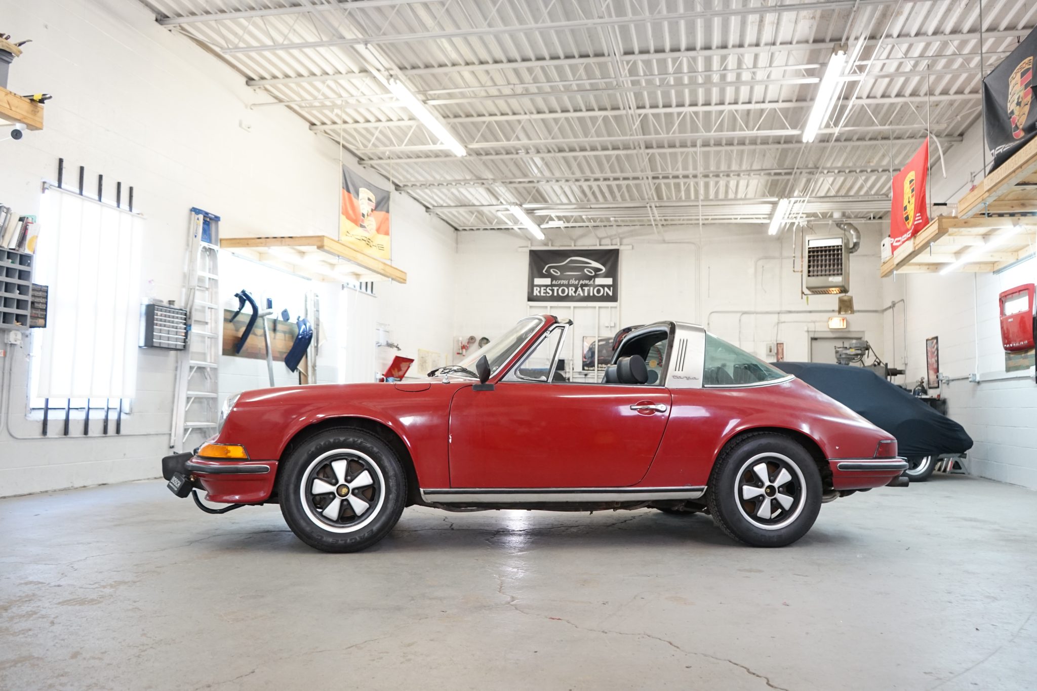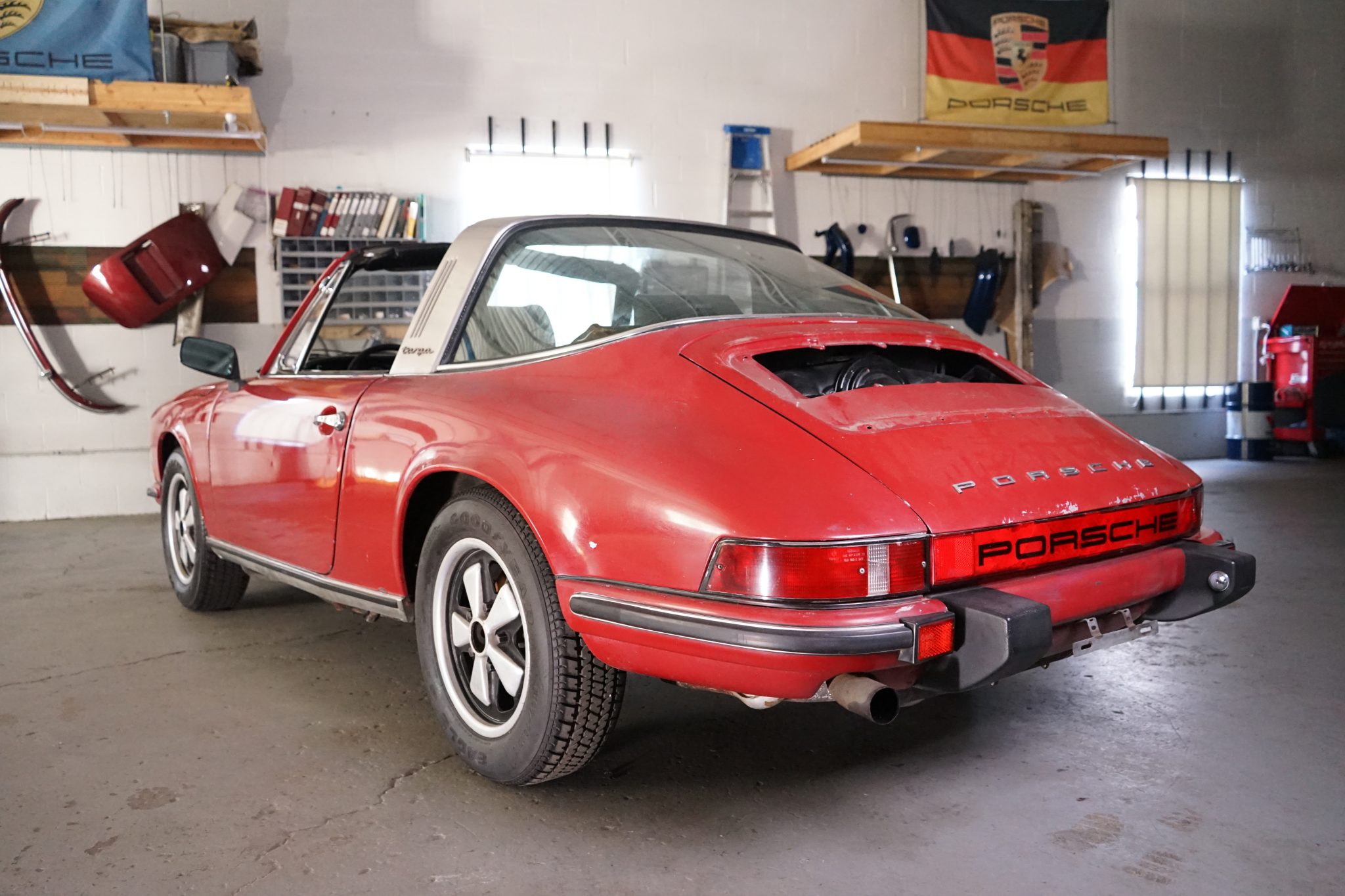 Alloy 15″ Fuchs wheels exhibit curb rash and are mounted with 185/70 Goodyear Eagle GT tires. Braking is handled by discs at all four corners. The seller notes that the brake system and dampers will need attention before driving.