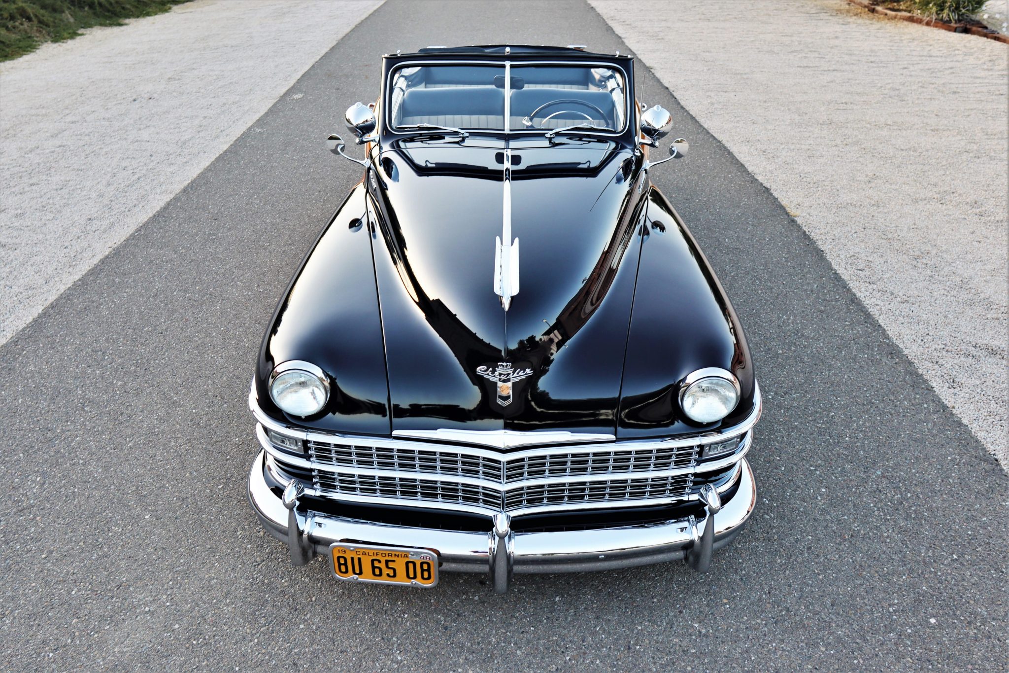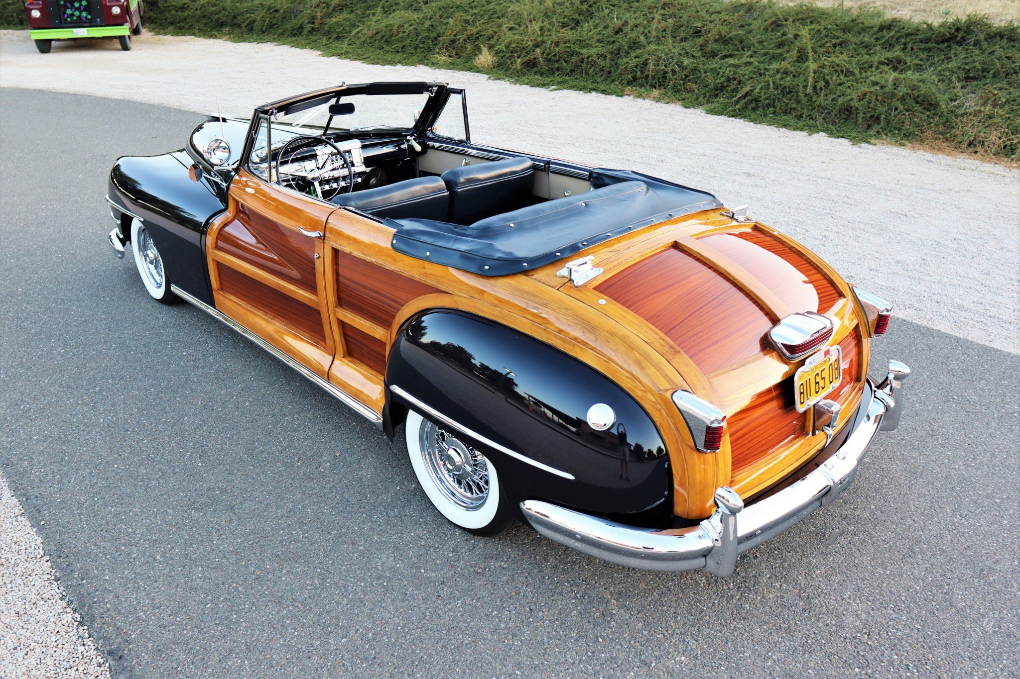 Chrome 16″ wire wheels wear two-eared spinner center caps and are mounted with 215/70 Toyo Tranpath whitewall tires. Custom bracketry was constructed, and metalwork was performed on the subframe, cross members, and chassis rails to allow for fitment of the added independent front suspension system, triangulated four-link rear suspension setup, coilovers, front and rear sway bars, and power-assisted steering. Braking is handled by power-assisted Wilwood disc brakes at all four corners.