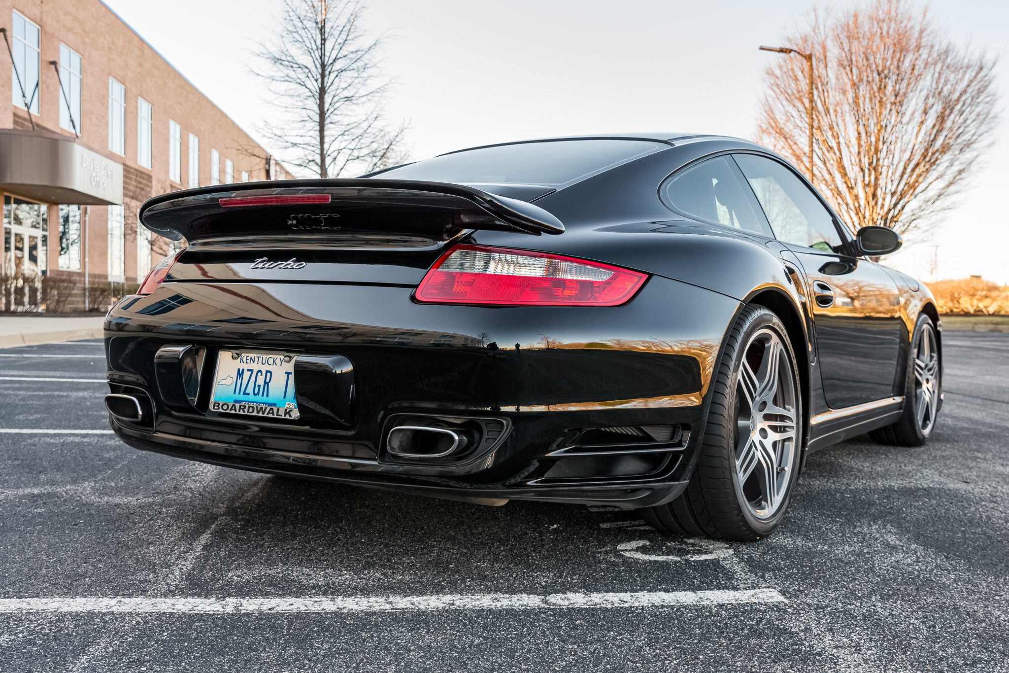 The 19” Turbo wheels are mounted with Pirelli P Zero tires measuring 235/35 in front and 305/30 out back. Braking is handled by red Porsche-branded six- and four-piston front and rear calipers over rotors measuring 13.8″ at each corner. The car is equipped with Porsche Active Suspension Management (PASM) as well as Porsche Stability Management (PSM) with an automatic brake differential (ABD).