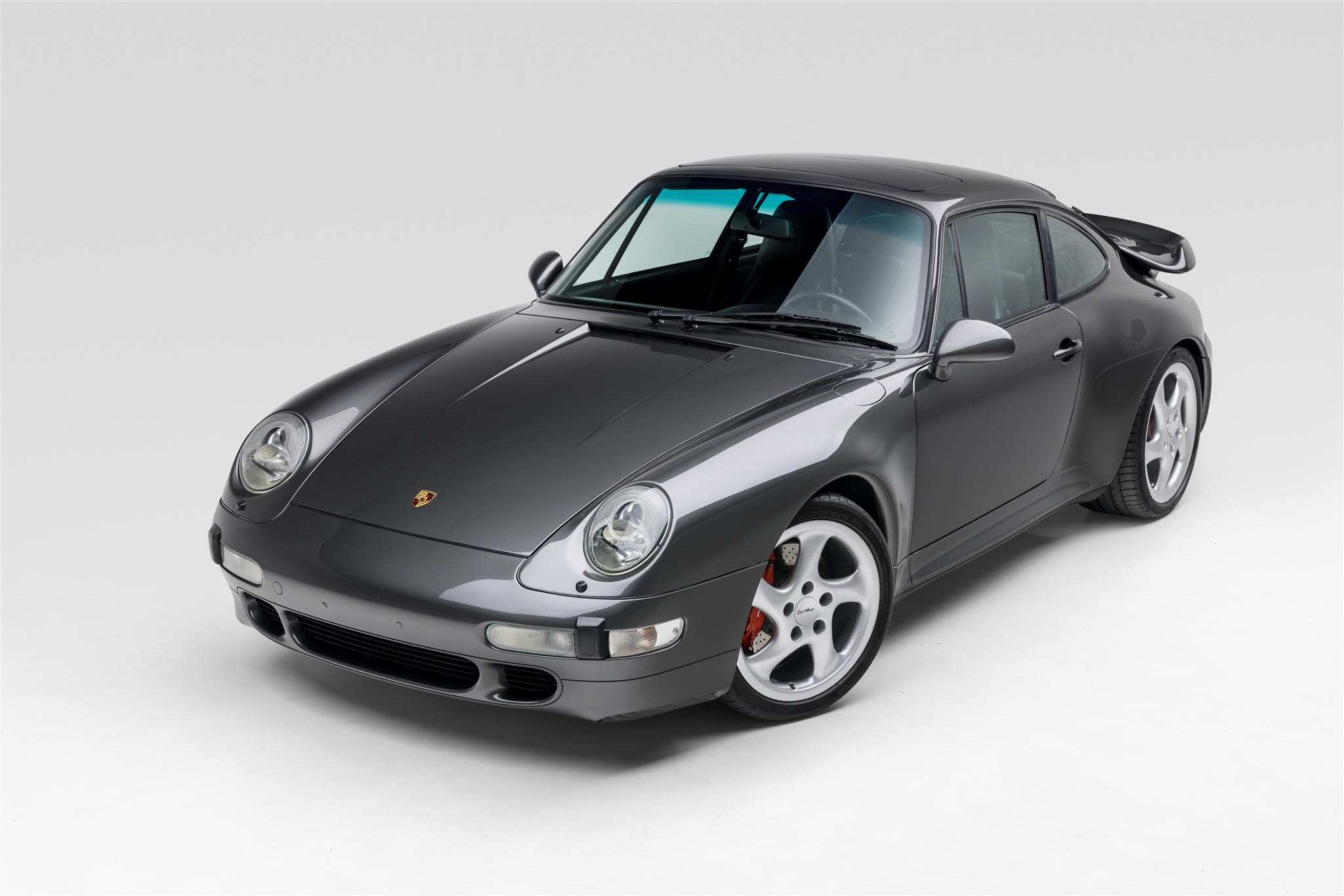The 18″ Turbo Twist wheels wear 225/40 front and 285/30 rear Michelin Pilot Sport tires that were mounted in 2020. The car features an Automatic Brake Differential (ABD), and the 993 was the first 911 to feature multi-link rear suspension. Braking is provided by red Porsche-branded four-piston calipers over cross-drilled rotors.