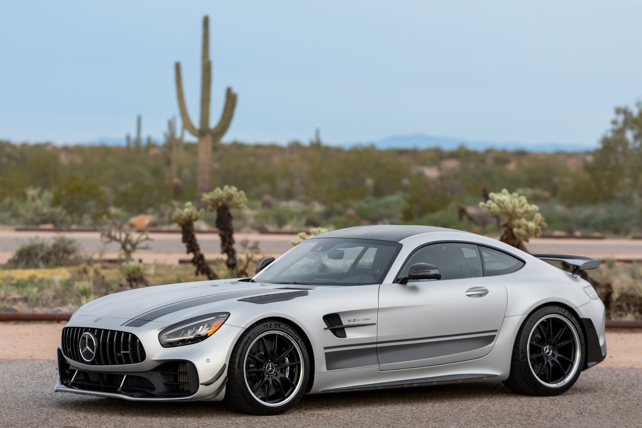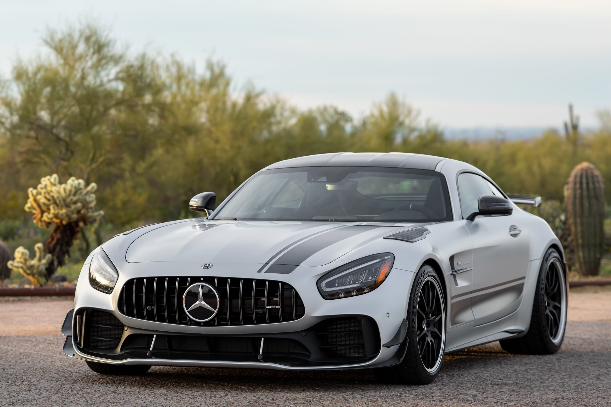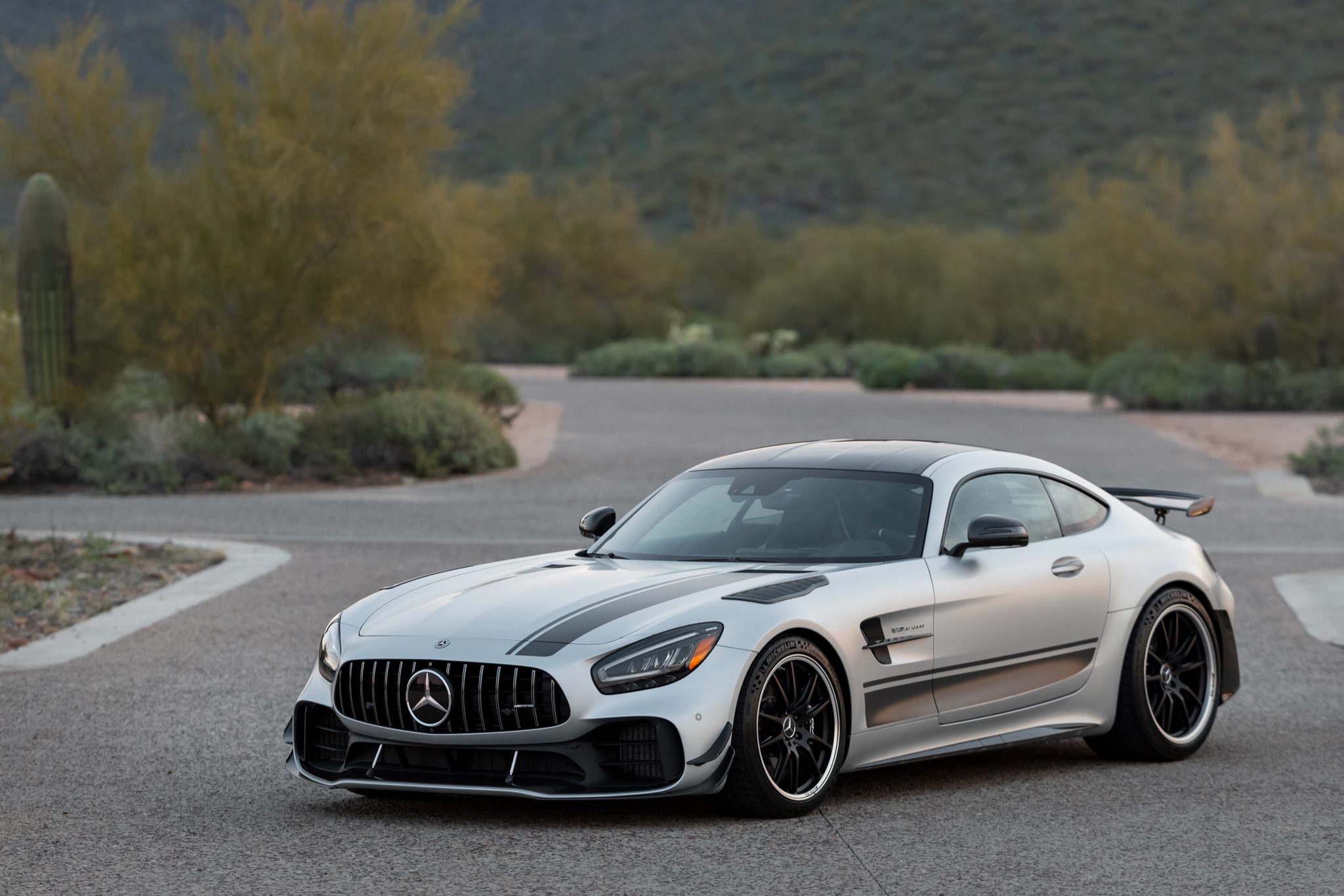 Forged 19″ and 20″ wheels are mounted with Michelin Pilot Sport Cup 2 tires that measure 275/35 up front and 325/30 in the rear. The car is equipped with the optional AMG High-Performance Ceramic-Composite Braking System, and the Pro package added an adjustable coilover suspension at all four corners.