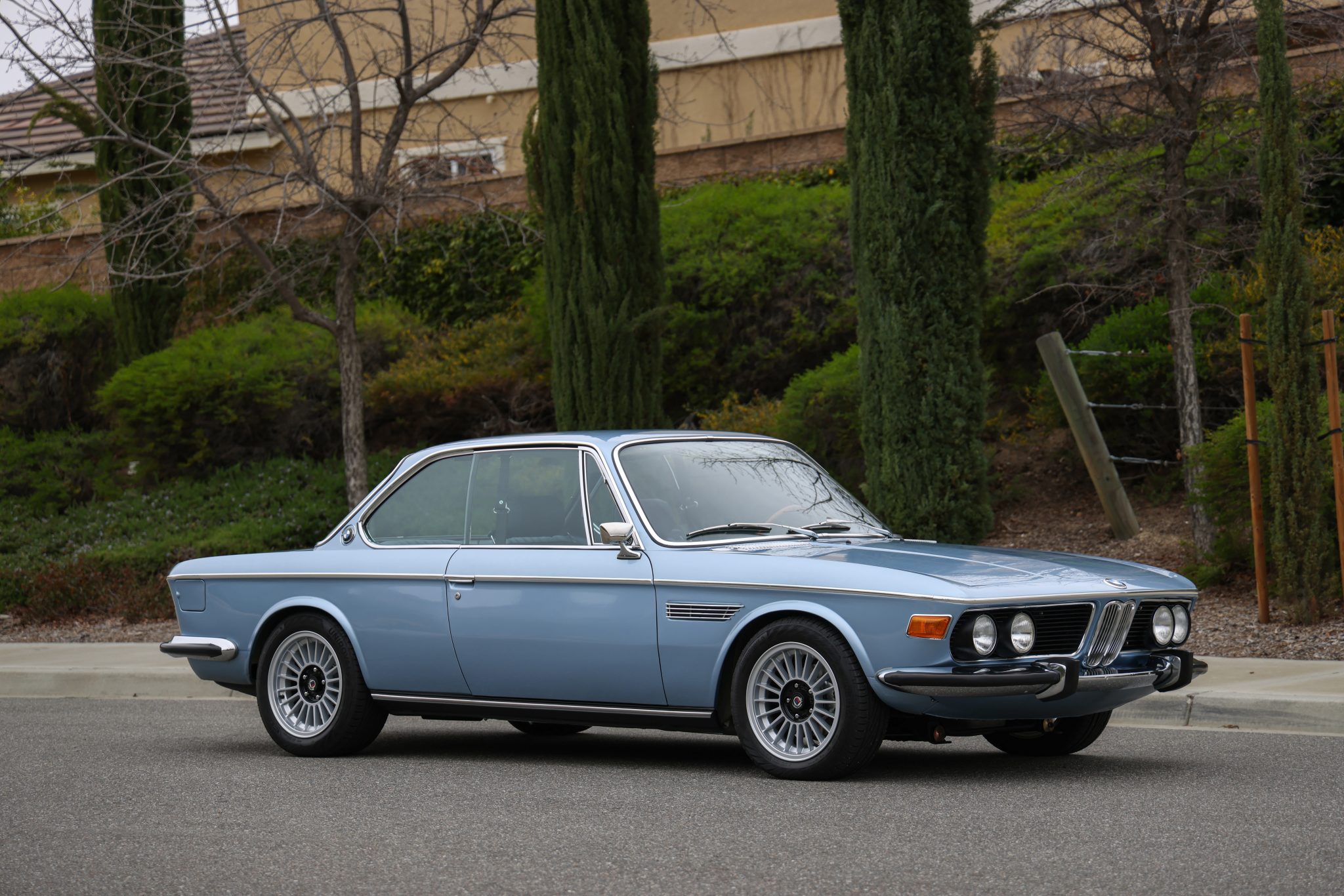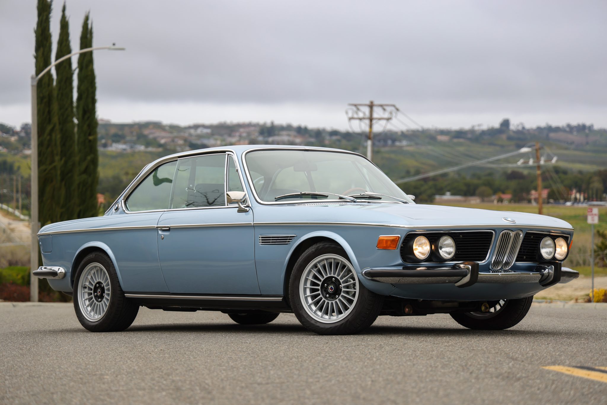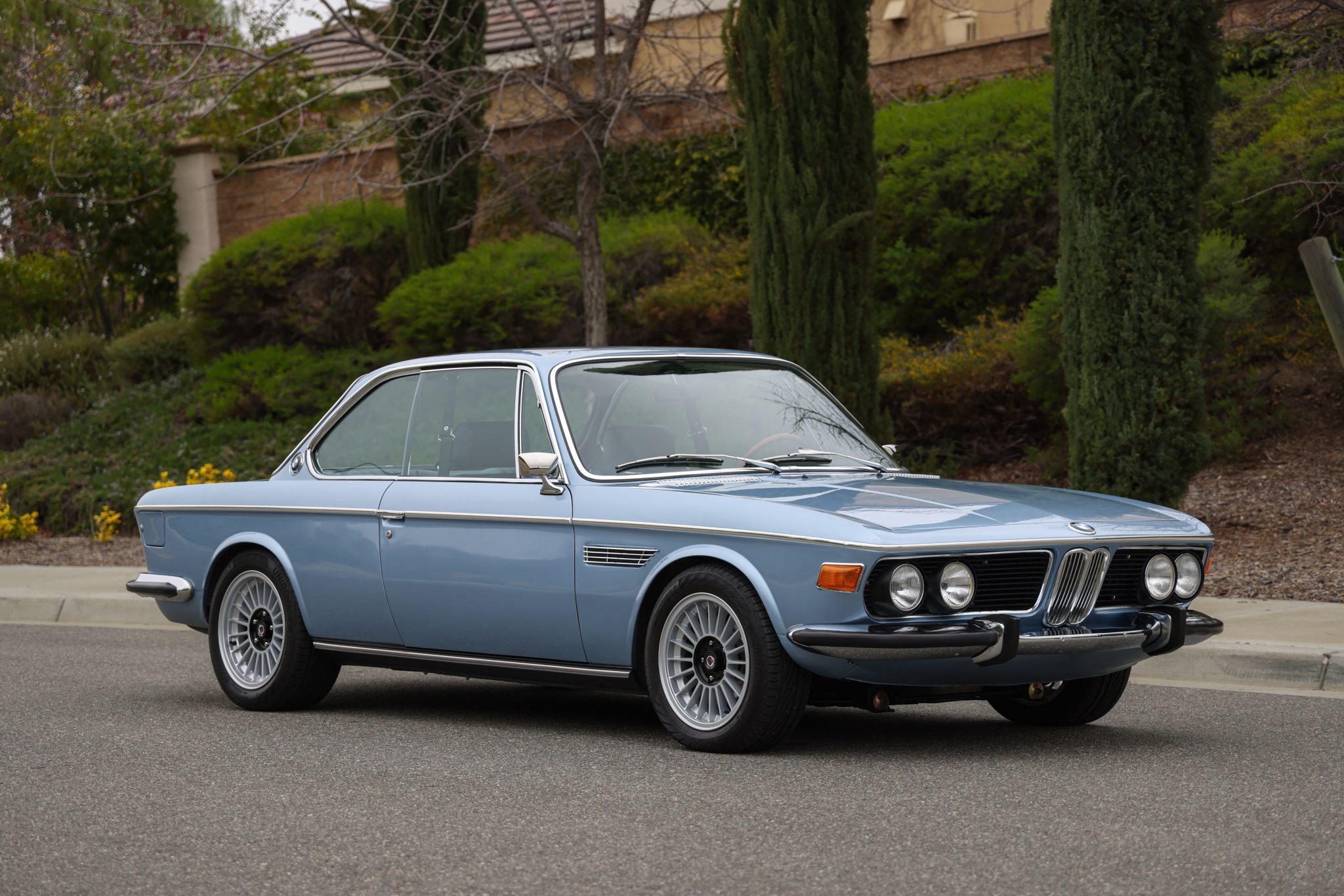 Reproduction Alpina-style 16″ wheels are fitted with 205/55 front and 225/50 rear Uniroyal RainSport 5 tires. Refurbishment work included powder-coating the axles, replacing the ball joints, wheel bearings, shocks, and springs in addition to overhauling the brake system, according to the seller.