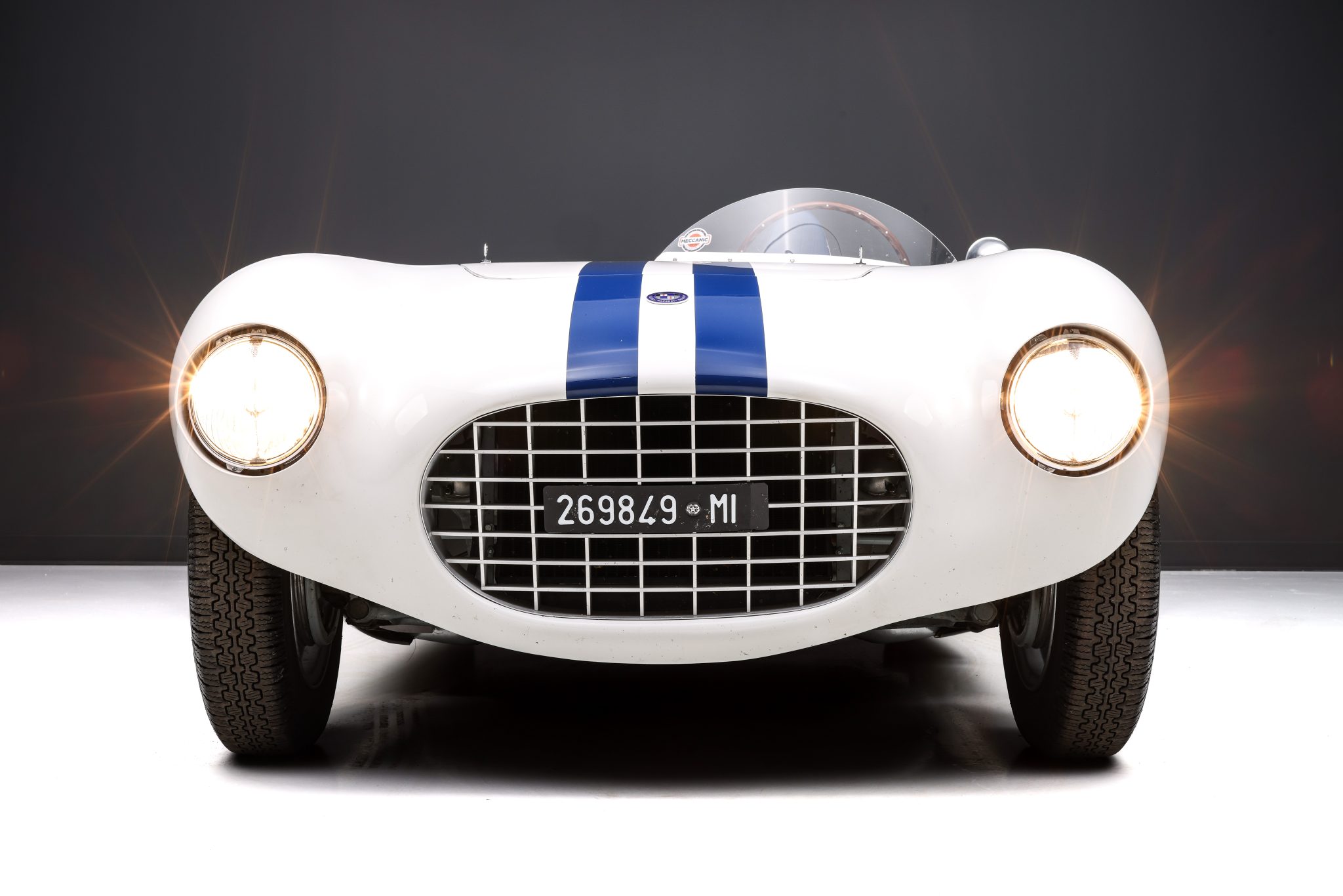 Metal repairs performed in 2005 by Highland Automotive in in Highland, New York, are said to have included the fabrication of replacement floor and inner panels as well as work to return previously widened rear fenders to their 1950s configuration. A non-louvered hood skin was fabricated during the refurbishment under subsequent ownership, which also included a repaint in a white and blue livery replicating that worn by the car in Italy in the 1950s.