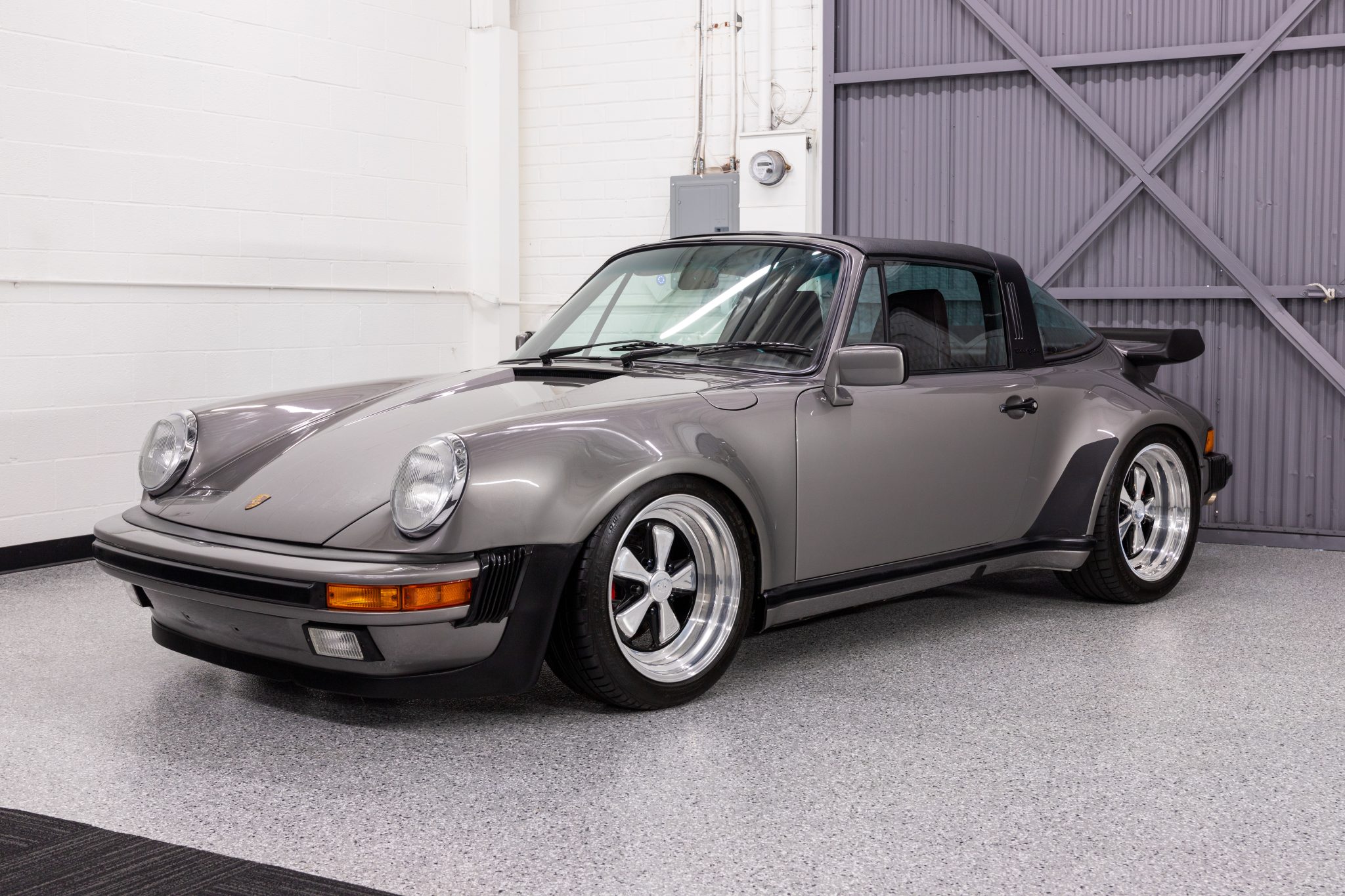 The polished 17″ Lindsey Fuchs-style alloy wheels feature bright centers, anodized lips, and black recesses, and they are mounted with Continental ExtremeContact tires. M491 equipment includes Turbo-specification brakes, anti-roll bars, trailing arms, and torsion bars. Bilstein shocks have been installed.
