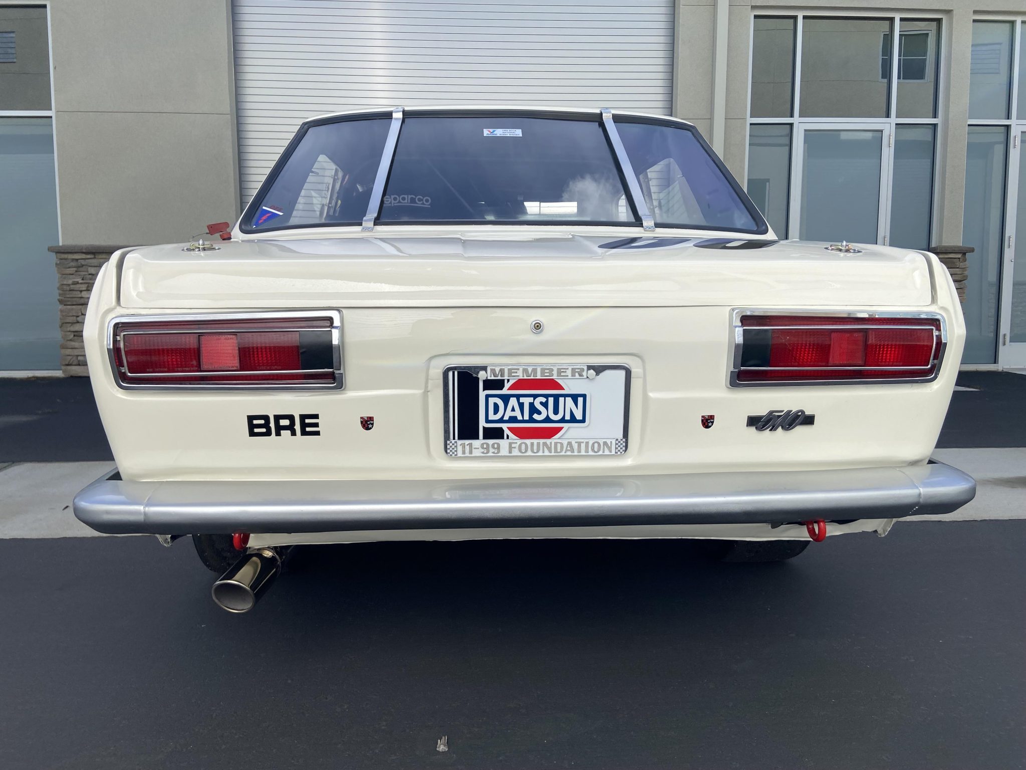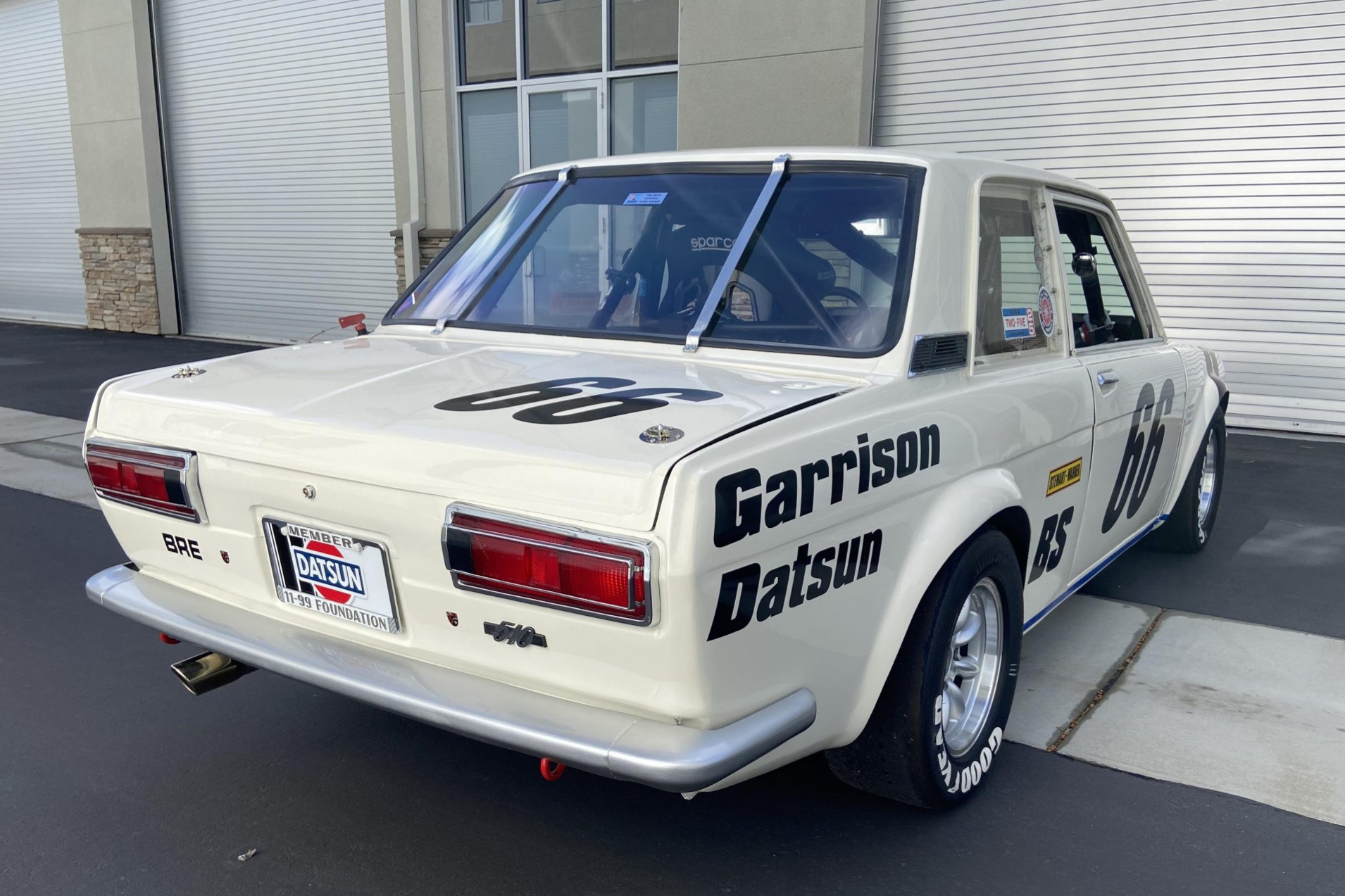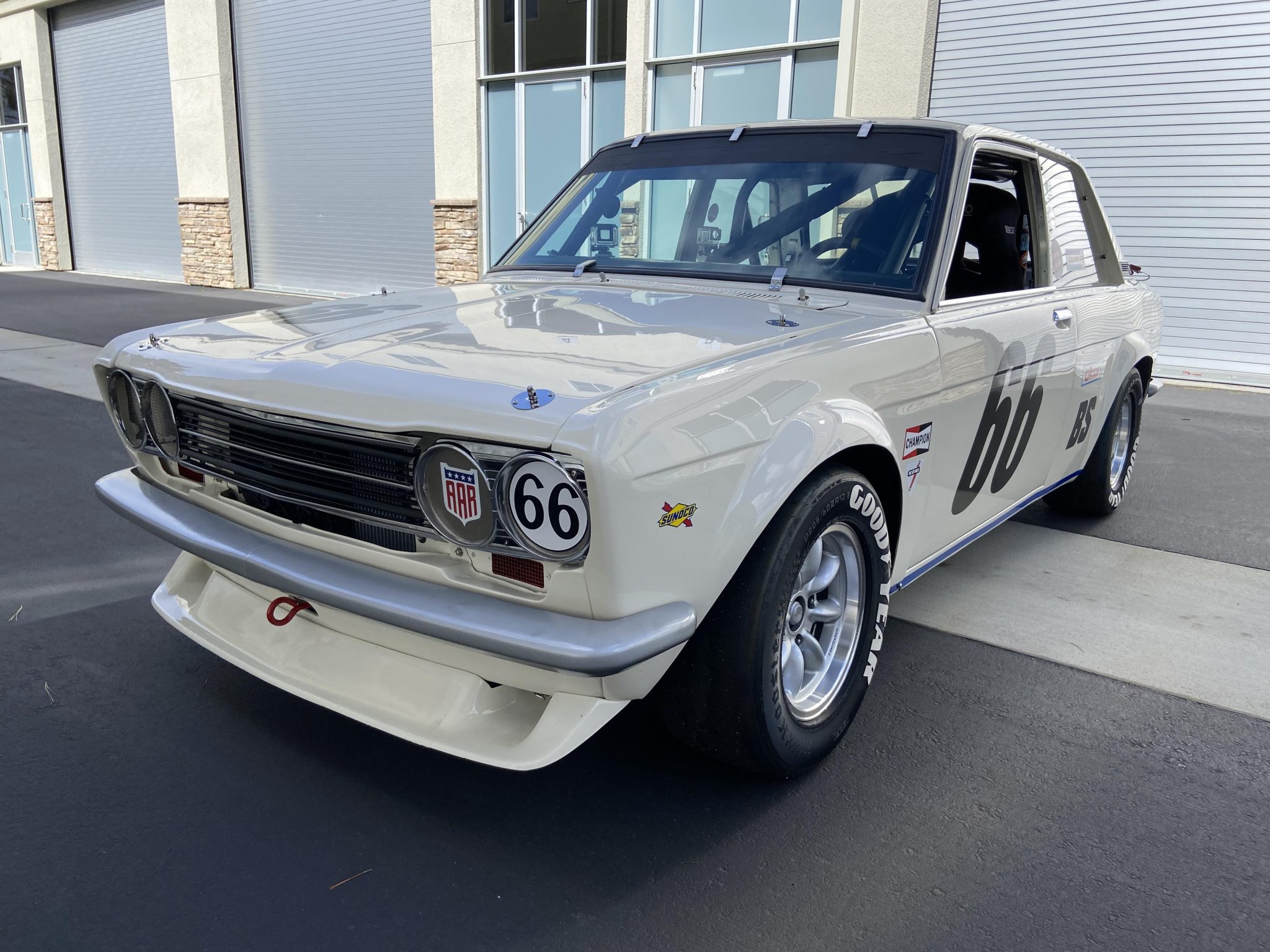 Silver-finished 13″ Panasport Z wheels with bright lips wear 205/60 Hoosier SRF tires that feature Goodyear white-letter stickers. Stopping power is provided by cross-drilled and slotted discs with multi-piston calipers up front and finned drums out back. The suspension is modified with QA1 double-adjustable dampers with height-adjustable coilover springs up front as well as weight jackers out back. A spare set of four Panasport wheels with Toyo Proxes R888R tires will accompany the car.