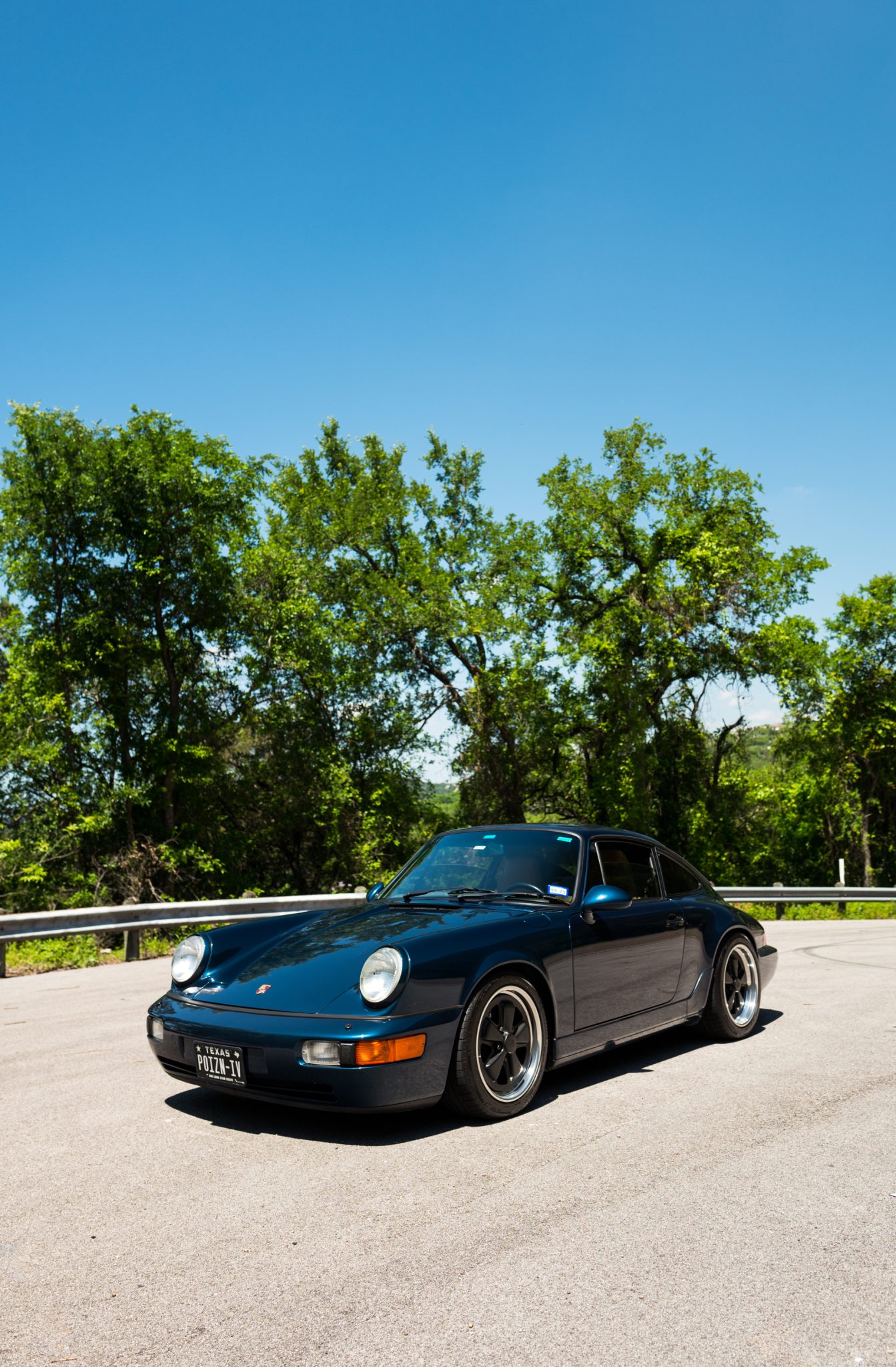 The 17″ Fuchs-style alloy wheels feature Porsche-crest center caps and wear 225/45 front and 265/40 rear Michelin Pilot Sport tires showing 2020 date codes. Braking is handled by four-wheel ventilated discs with ABS, and F2 coilovers have been fitted. A set of factory 17″ Cup wheels with Continental Extreme Contact tires showing 2018 date codes are included in the sale, photos of which are provided in the gallery below.