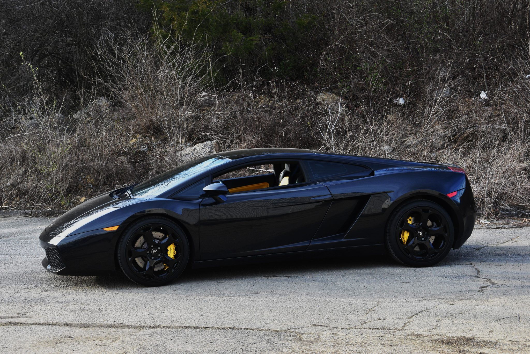 Black-finished 19″ Cassiopeia wheels are mounted with Hankook Ventus V12 evo2 tires measuring 235/35 up front and 295/30 at the rear. Braking is provided by yellow-finished calipers with black Lamborghini script over cross-drilled and ventilated rotors at all four corners.