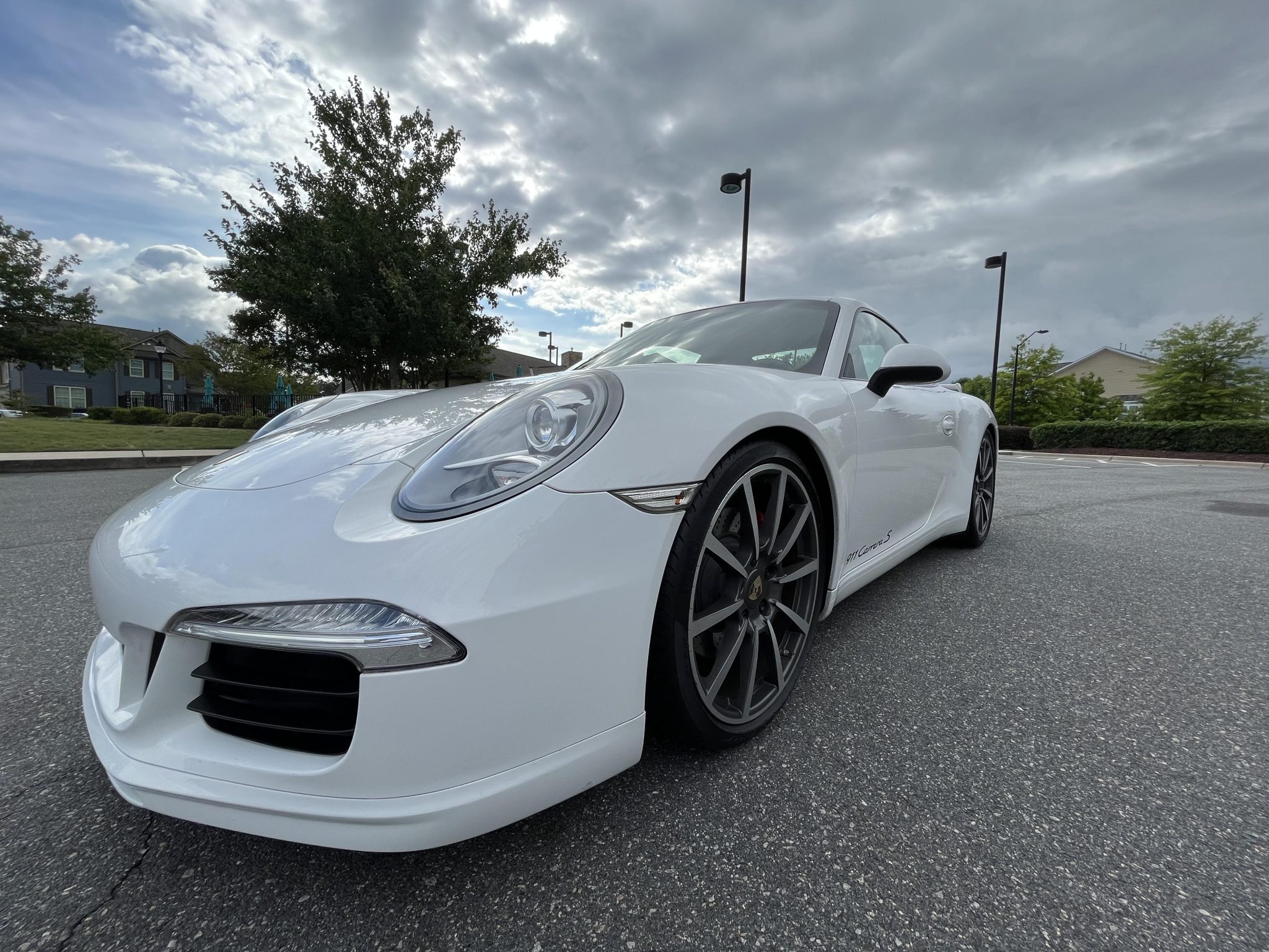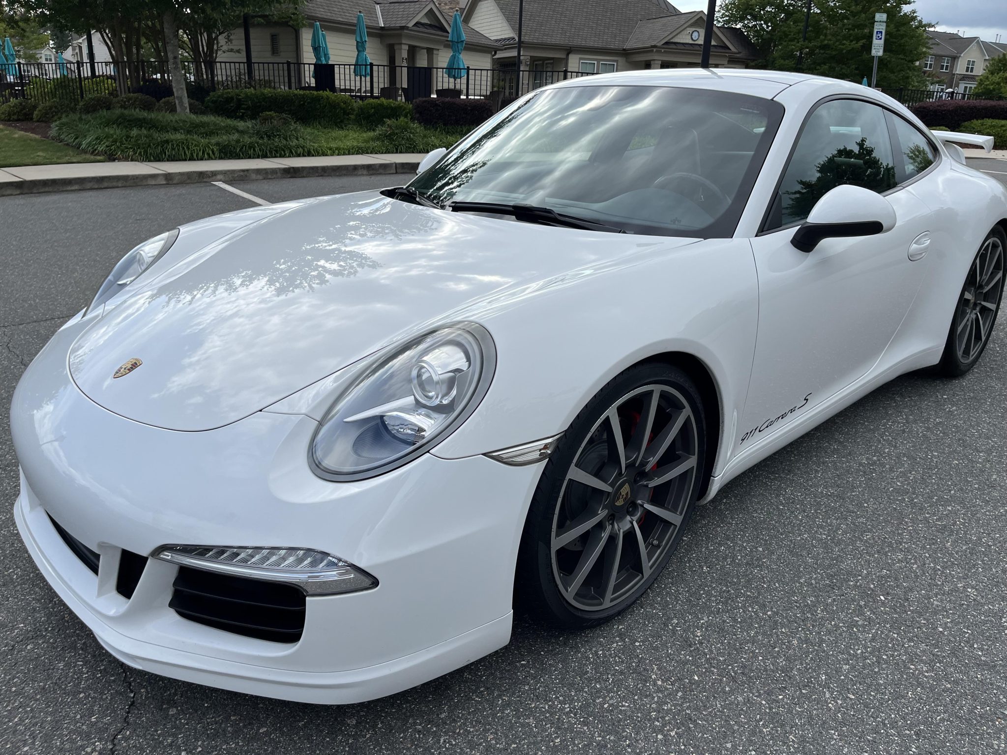 Classic Carrera 20″ alloy wheels are mounted with 245/35 front and 305/30 rear Pirelli P Zero tires. Porsche Active Suspension Management (PASM) was standard equipment on the Carrera S, and stopping power is provided by red-finished six-piston front and four-piston rear calipers over cross-drilled rotors. The brake pads, rotors, and wear sensors were replaced and a brake fluid flush was performed in October 2022. Curb rash is evident on the wheels.