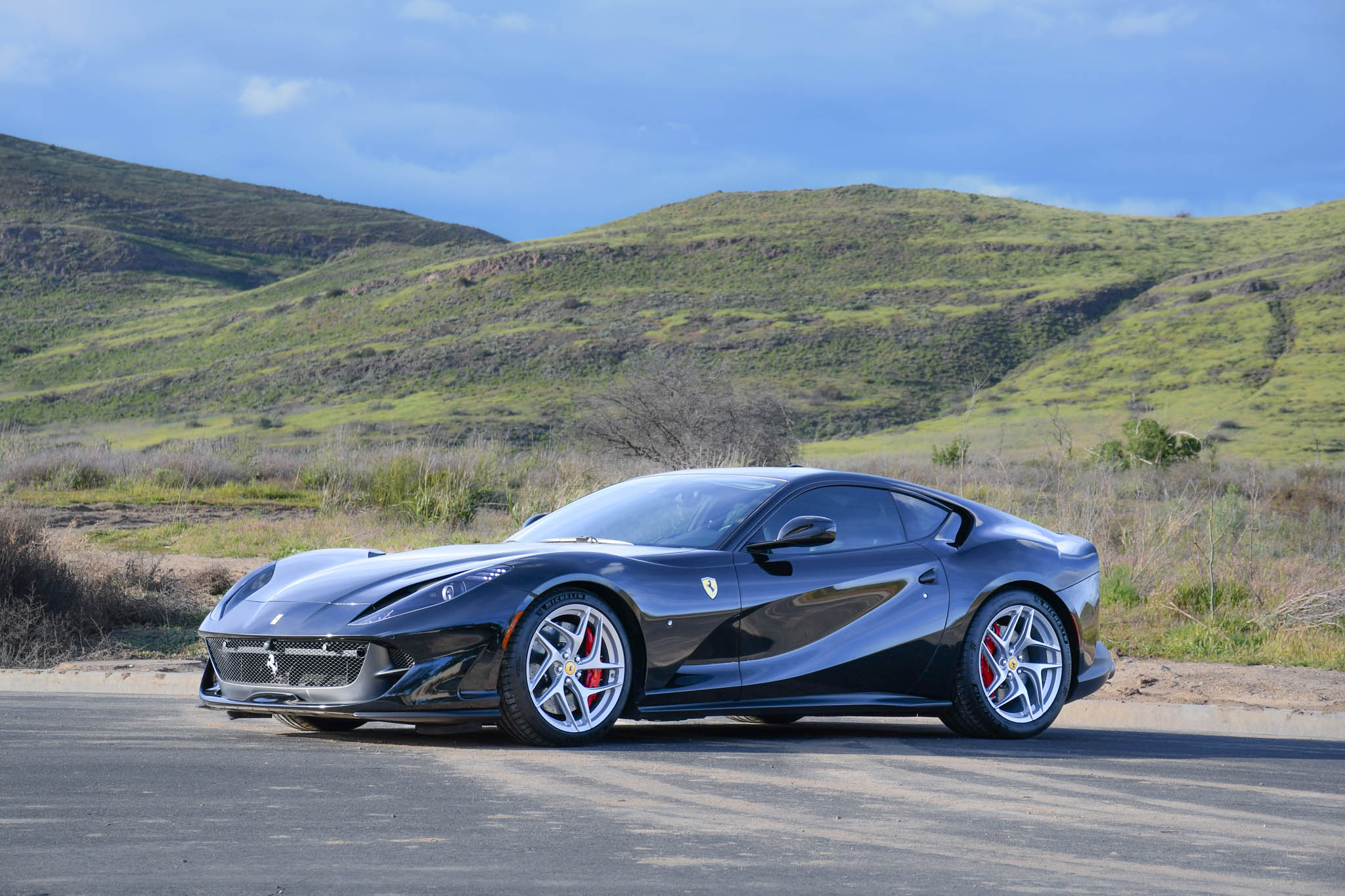 Silver 20″ forged aluminum wheels wear 275/35 front and 315/35 rear Michelin Pilot Sport 4S tires. The 812 Superfast is equipped with rear-wheel steering, and this example was optioned with a suspension lift system. The Brembo Extreme Design brakes feature carbon ceramic discs and red Ferrari-branded calipers at all four corners.