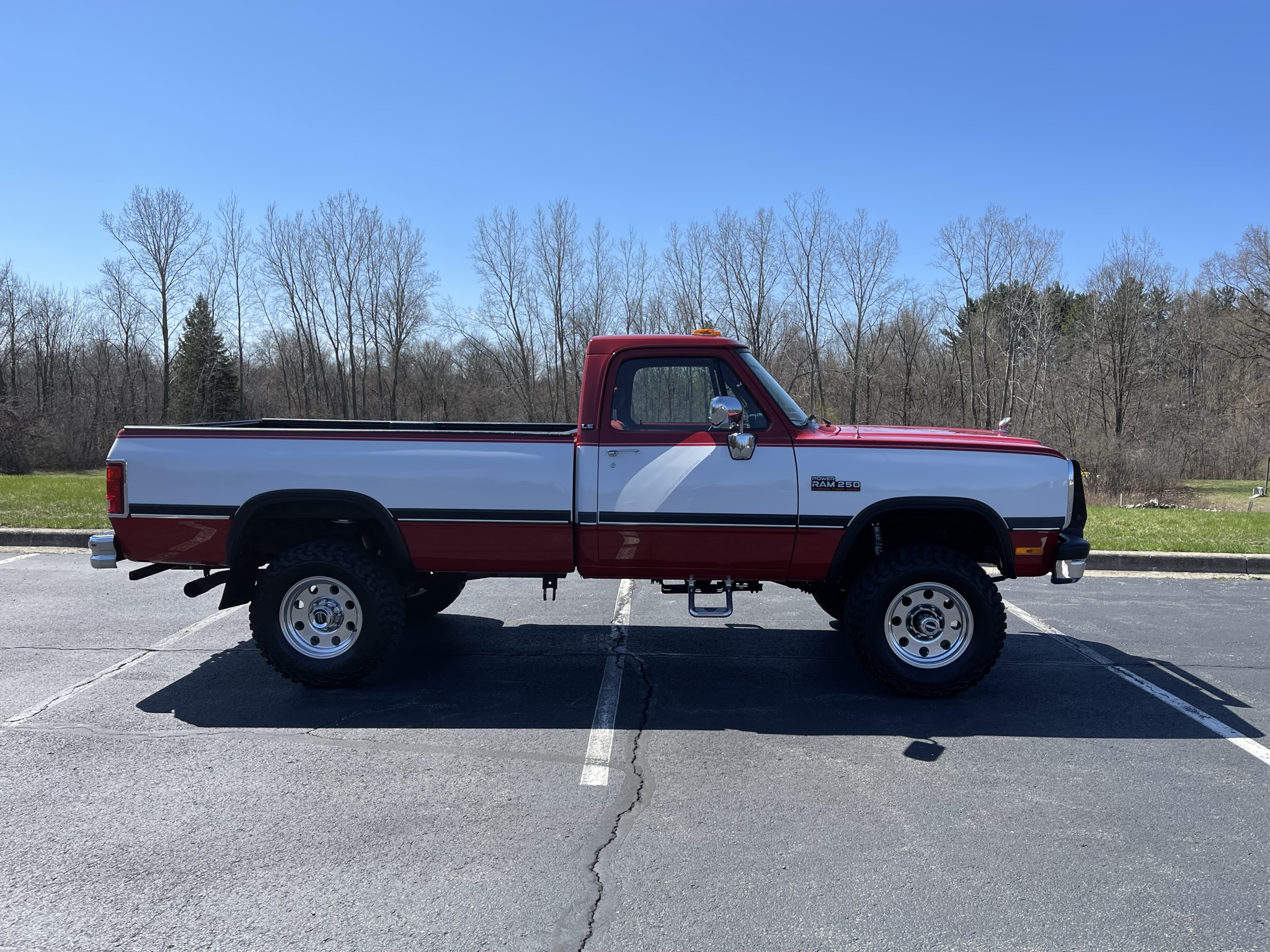 Aftermarket 17″ alloy wheels are wrapped in 285/75 BFGoodrich Mud-Terrain T/A tires, and manually locking hubs are fitted up front. Stopping is provided by power-assisted discs up front and drums out back. The seller notes that a suspension lift kit and a Redhead steering box have been fitted. A set of factory wheels with tires is included in the sale along with the removed factory shocks.