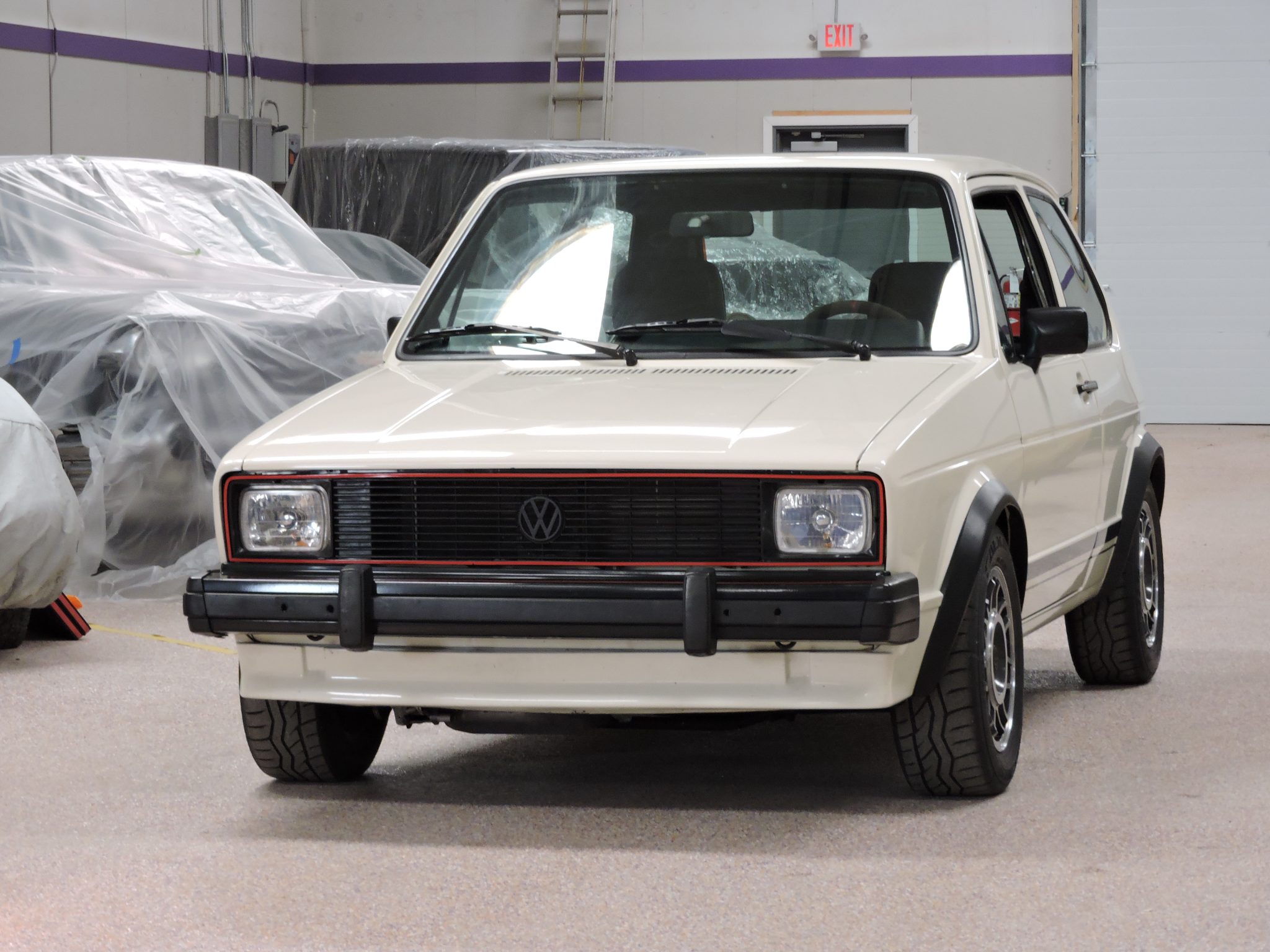 Silver-finished 14″ Snowflake alloy wheels with black-painted pockets are wrapped in older 195/60 Falken Azenis NT616R tires. The front disc brakes were reportedly sourced from a Scirocco 16V, and the seller states that they have been fitted with Hawk HP pads. Per the seller, the car is equipped with a four-point subframe brace, a stiffer rear anti-roll bar, and coilovers utilizing Bilstein gas struts and shocks in addition to 650-lb. front and 450-lb. rear springs. A power-steering rack reportedly sourced from a Mk 1 Cabriolet was installed in 2021, and the seller notes a power steering fluid leak.
