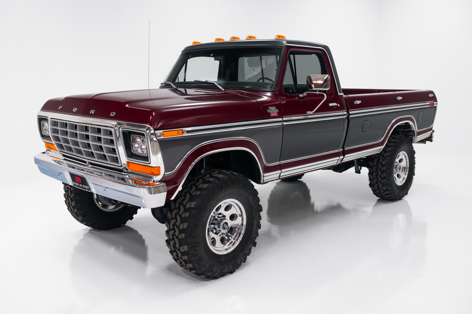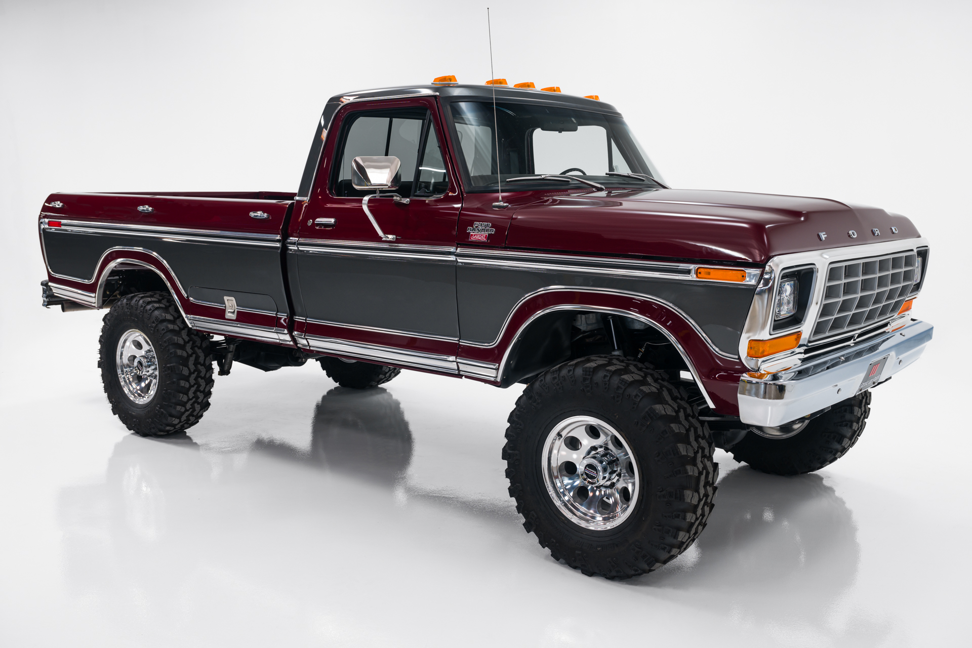 Bright 17″ American Racing wheels are mounted with Interco Super Swamper tires. The truck has manual locking front hubs, and braking power is provided by a Ford SuperDuty Hydroboost braking system.